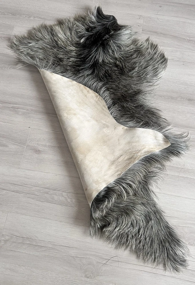 Received beautiful sheepskin with lovely dark colors and patches of lighter toned. Received shipment promptly and I went on to purchase another sheepskin for my mother