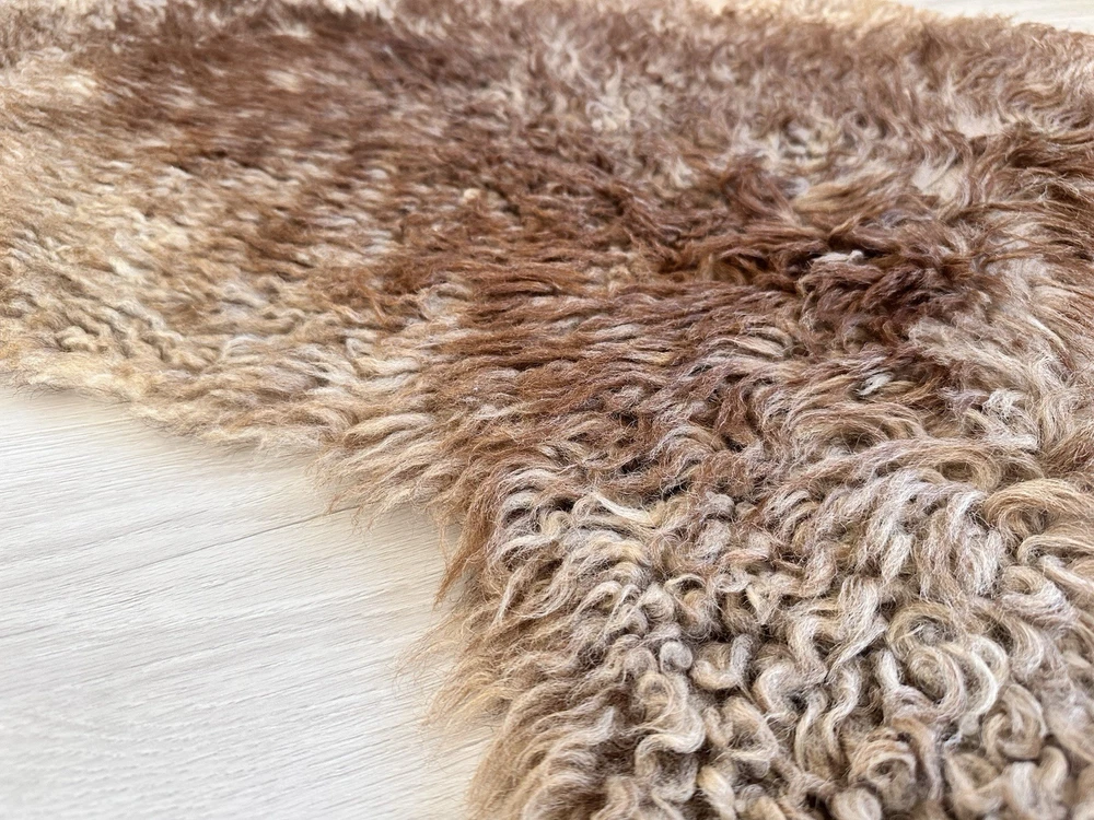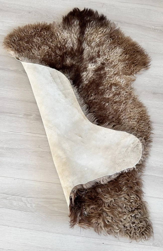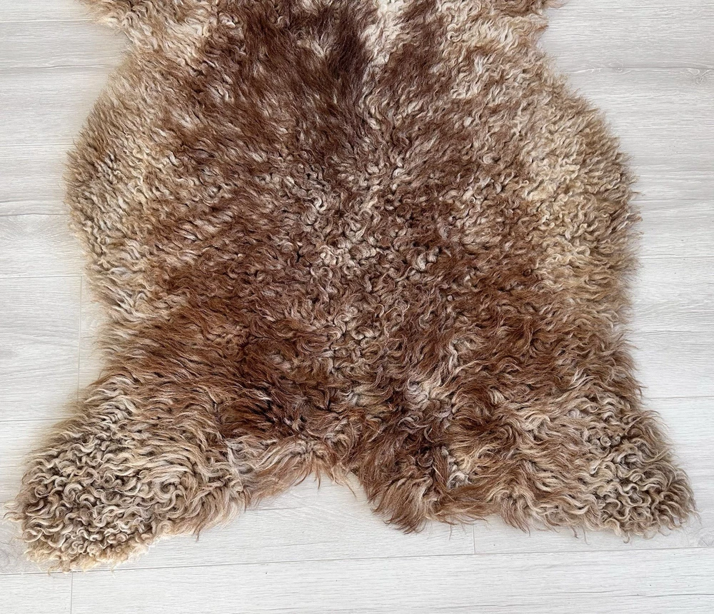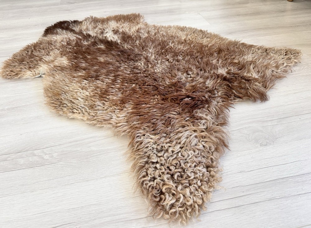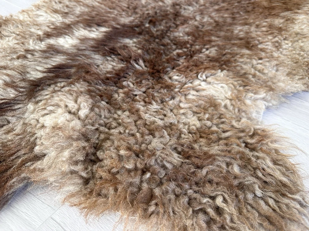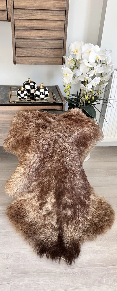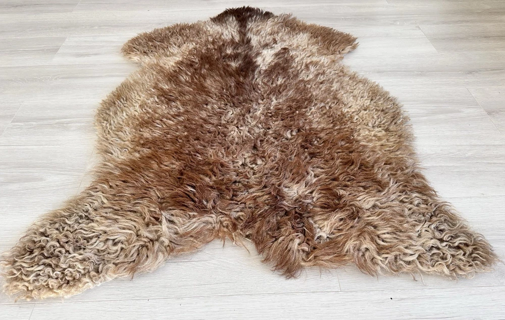 Received beautiful sheepskin with lovely dark colors and patches of lighter toned. Received shipment promptly and I went on to purchase another sheepskin for my mother