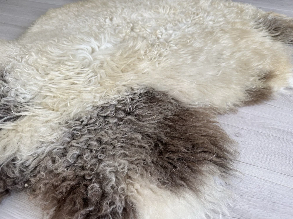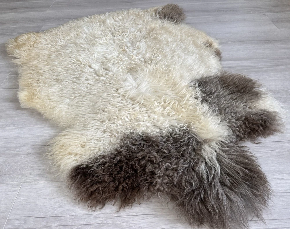 %100 Natural Gotland Sheepskin Rug,sheepskin Pelt,Natural Color,white,black Brow