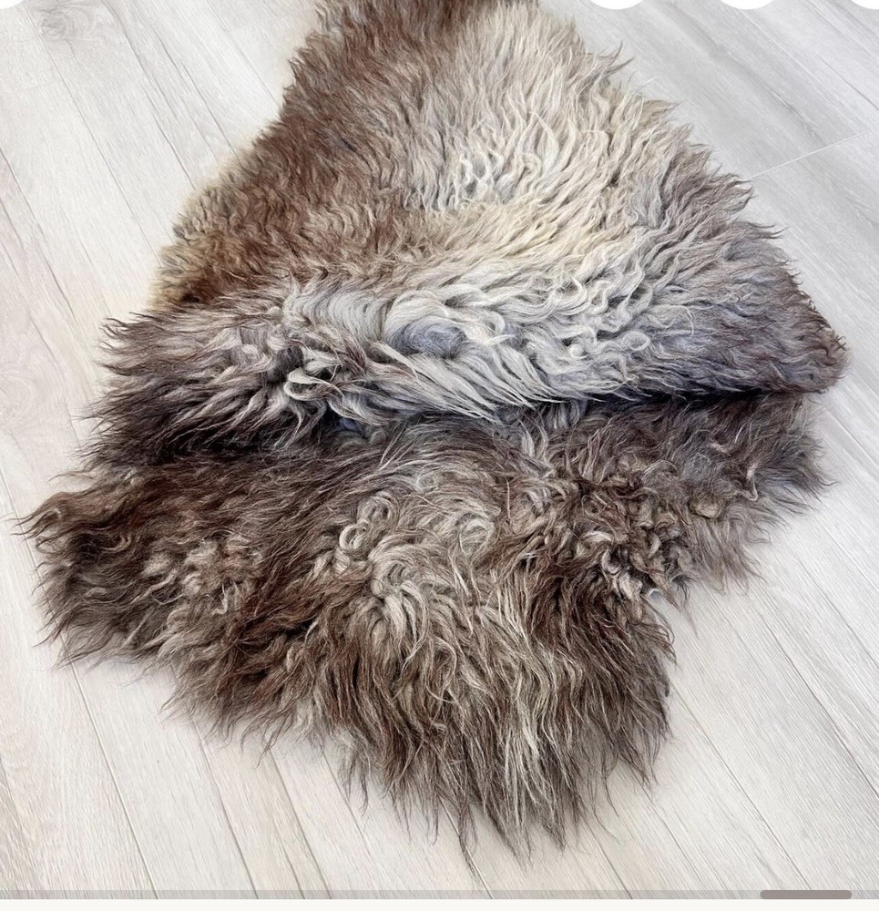%100 Natural Goatskin Rug,goatskin Pelt,goatskin Carpet,Color,gray,off White.