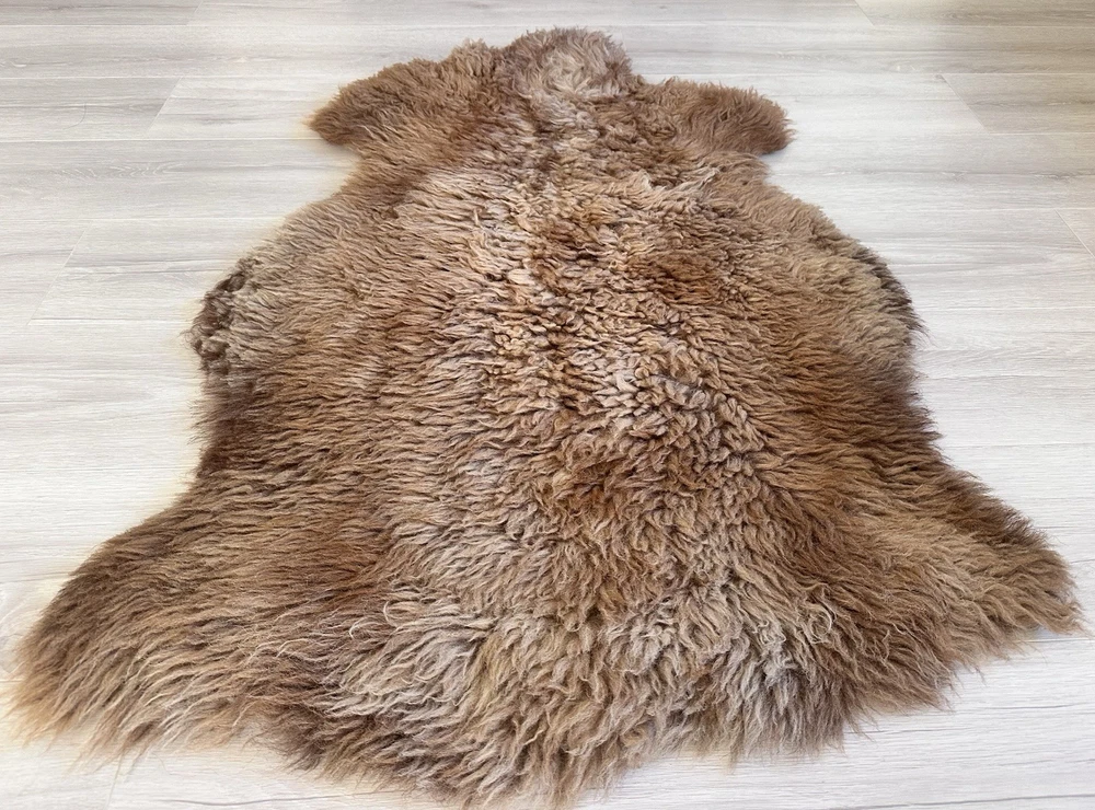 This %100 Natural Sheepskin Rug is a genuine sheepskin product in natural color, featuring a blend of brown and gray tones. Made in Türkiye, the rug measures 41 inches in length and 28 inches in width. With its high-quality material and unique multicolor design, this rug is perfect for adding a touch of natural beauty and texture to any home decor setting.