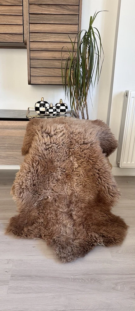 Received beautiful sheepskin with lovely dark colors and patches of lighter toned. Received shipment promptly and I went on to purchase another sheepskin for my mother