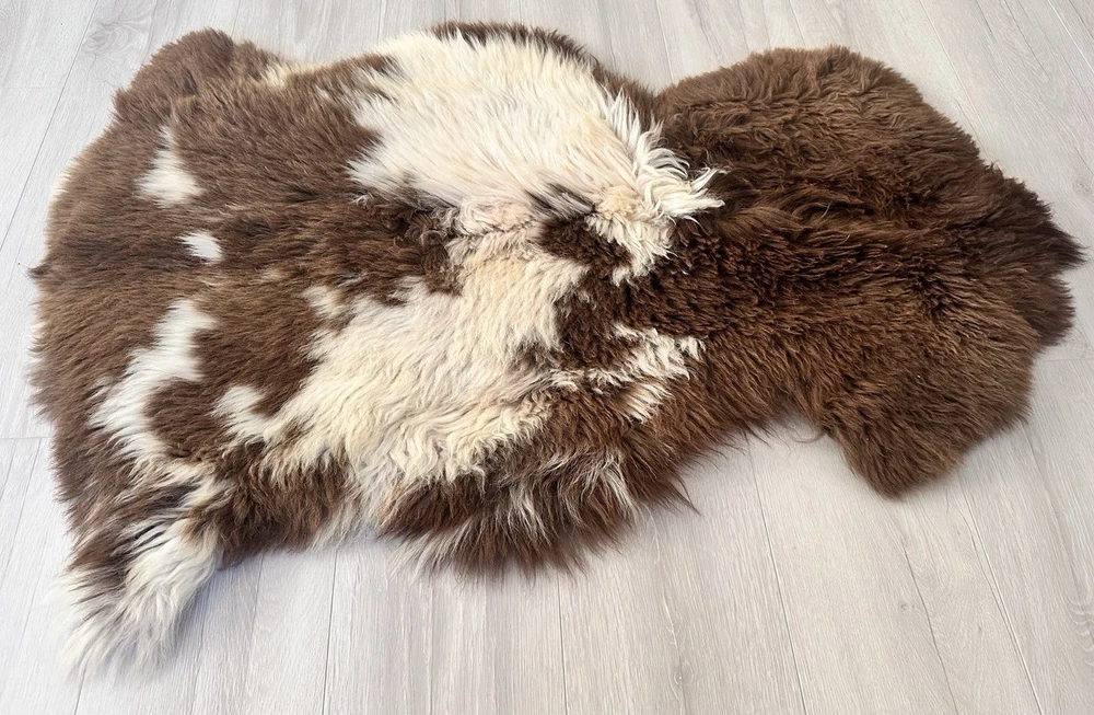Received beautiful sheepskin with lovely dark colors and patches of lighter toned. Received shipment promptly and I went on to purchase another sheepskin for my mother