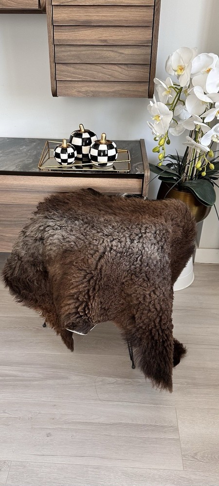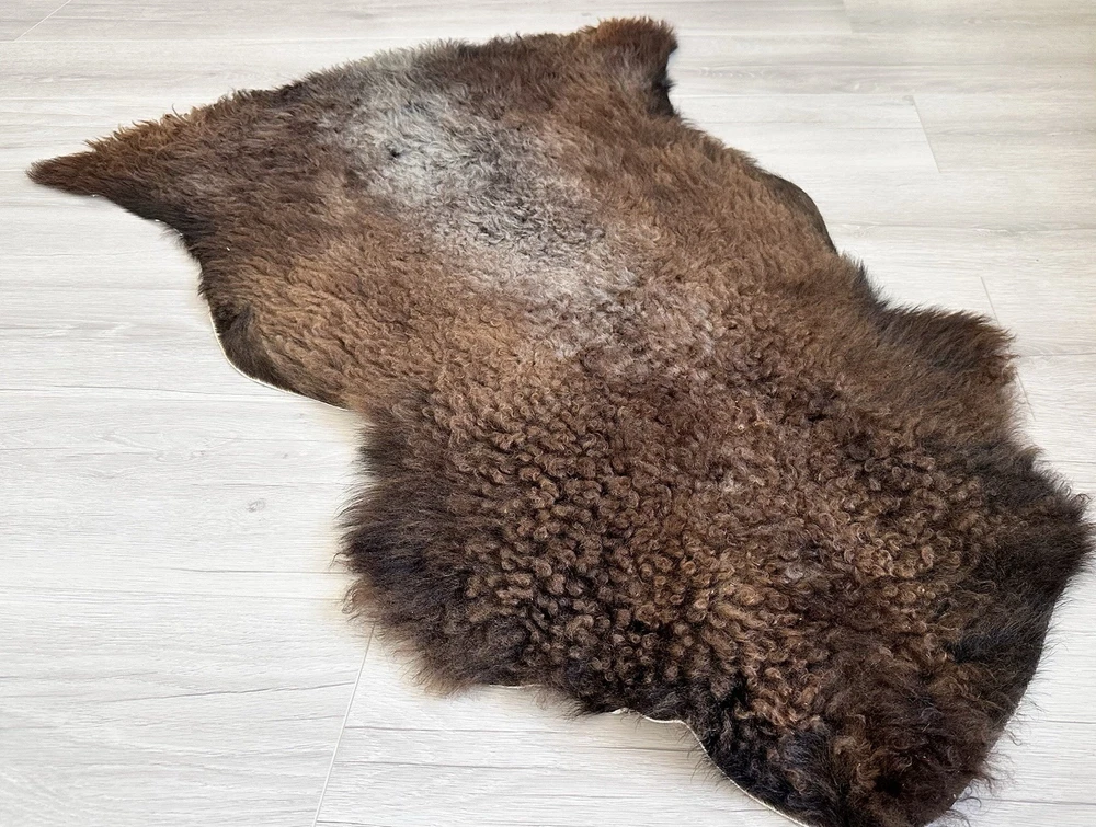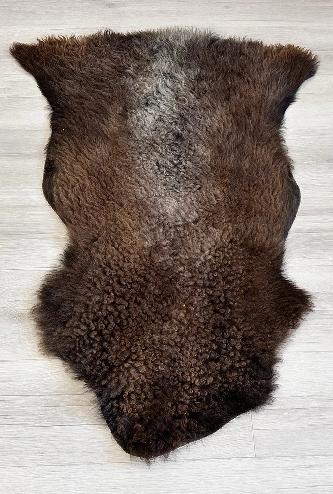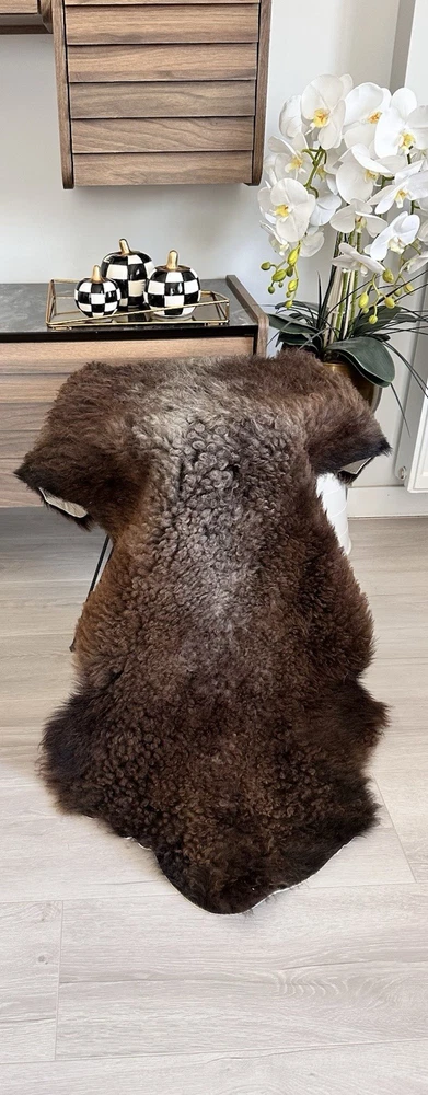 Received beautiful sheepskin with lovely dark colors and patches of lighter toned. Received shipment promptly and I went on to purchase another sheepskin for my mother