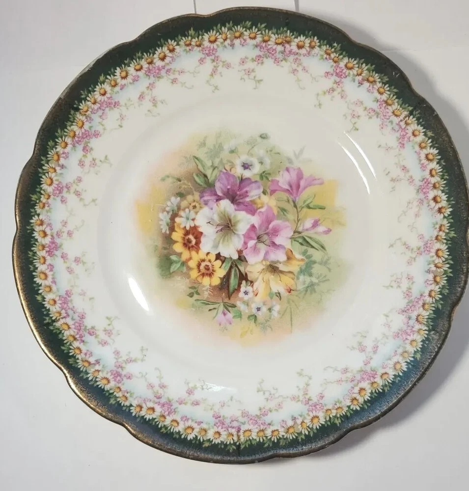 This antique German dessert plate is a beautiful addition to any collection. The plate features a delicate floral pattern, painted on fine porcelain, and is in great shape for its age. The plate has been well-maintained and would be perfect for use on all occasions, whether for display or everyday use. Measuring 8" in length, this dessert plate is from the 1800s and was made in China for the German market. The plate has a painted backstamp and is identified as a dessert plate. The plate is perfect for those who are looking for a unique and elegant piece.