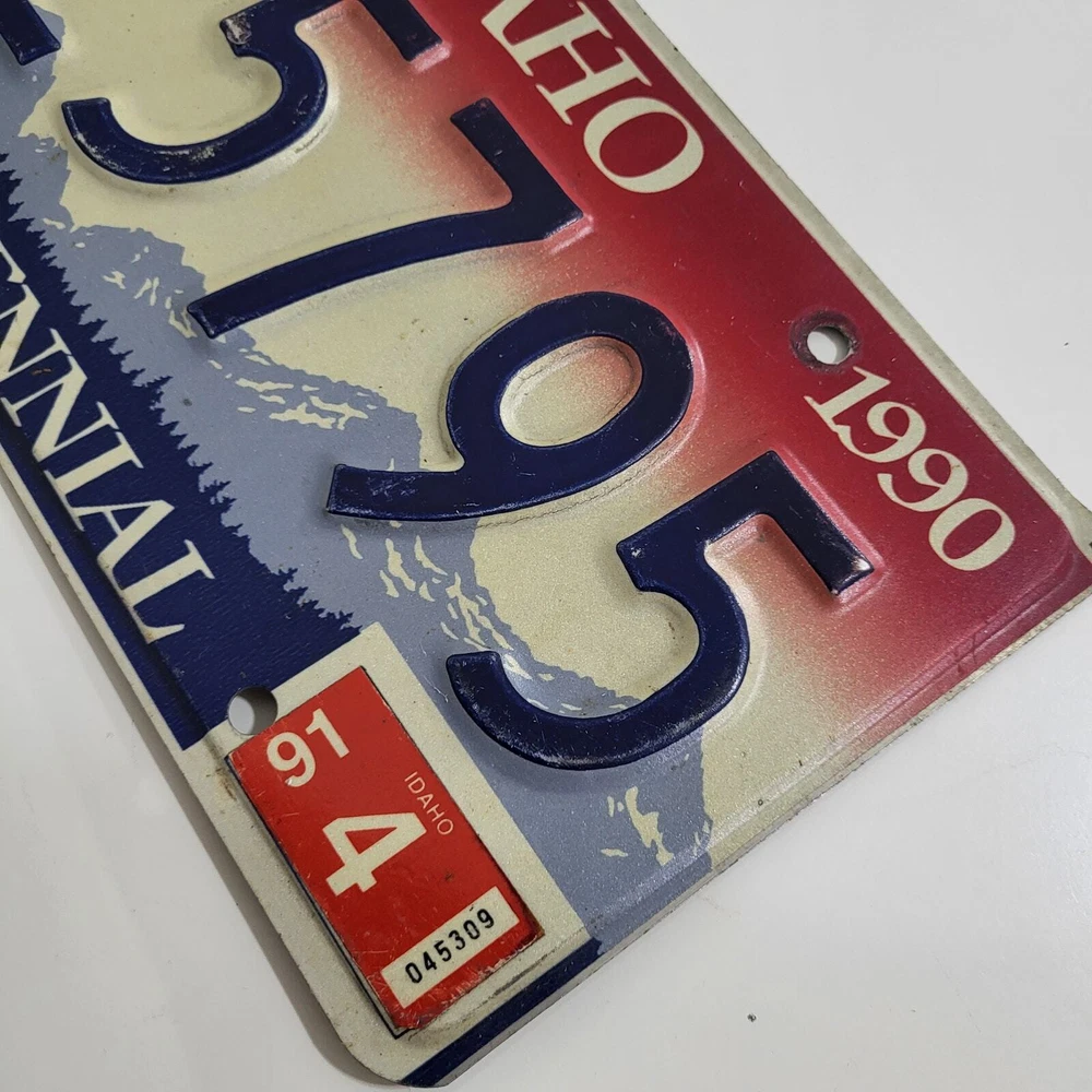 Vintage 1990 Idaho License Plate Automotive Collectible Size: Standard Size 12 inch x 6 inch Condition. Mostly good, but it is slightly bent and does have some dings and scratches. I took some closeup pics so you could get a good look. ~ Automotive, Collectible, Garage Decor