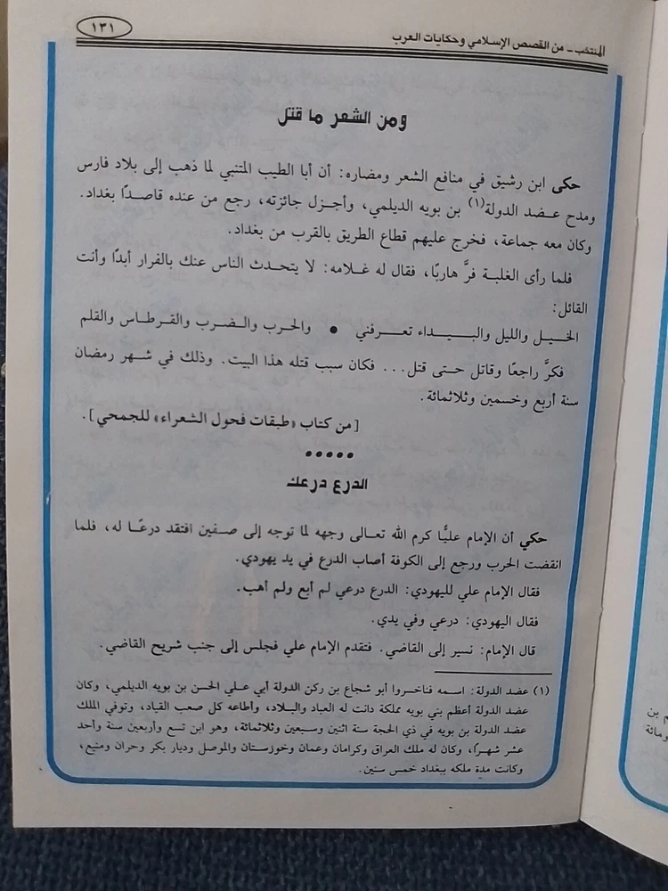 Genre: Adventure, History, Spirituality, Religious & Spiritual Publication Year: 2005 Author: عادل عبد المطلب Book Title: كتاب المنتخب من القصص الاسلامي وحكايات العرب Vintage: Yes Number of Pages: 217 Book Series: Historical Publisher: المكتب الثقافي للنشر والتوزيع Country of Origin: Jordan Original Language: Arabic Topic: Self-Help, Life-Guide, history, كتاب, Islam, Books, Literature Language: Arabic Edition: First Edition