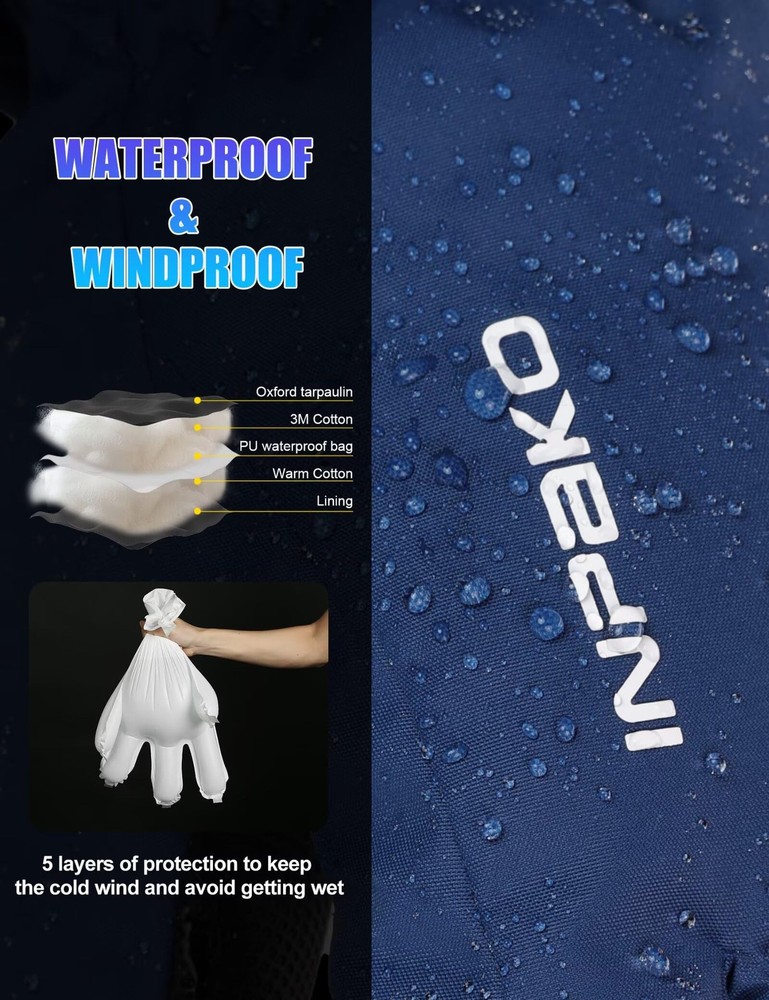 【Warm & Comfortable】: Men's gloves are lined with thermal cotton and 3M Thinsulate cotton, warm and cozy, and the wrists have draw cords, to prevent rain and snow from entering. They are very suitable for skiing, snowboarding, shoveling snow or any cold weather activities. 【Windproof & Waterproof】: These warm winter gloves come with a TPU waterproof bag, ensuring your hands are dry and warm even when playing outdoors in the rain and snow. 【Anti-slip & Wear-resistant】: The thermal gloves palm is made of PU leather, which has good anti-slip properties, allowing you to easily grab the ski poles and improve skiing safety. 【Anti-lost Design】: There is a connecting buckle in the middle of the two ski gloves. When the gloves are not in use, the gloves can be buckled together to avoid losing one glove. 【Warrant】: We provide comprehensive pre-sales and after-sales services to ensure that you purchase satisfactory products. If you have any dissatisfaction, please feel free to contact us.