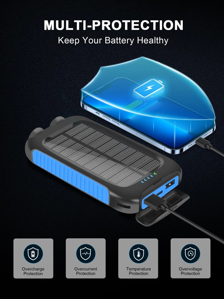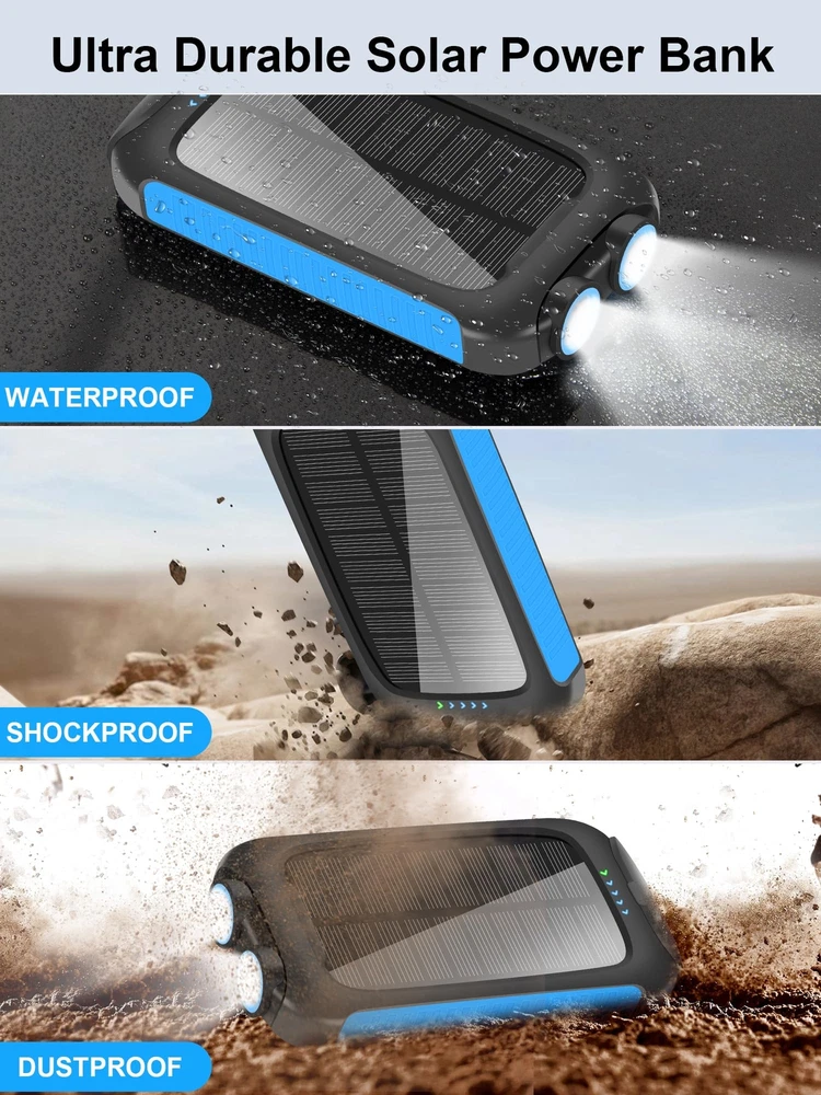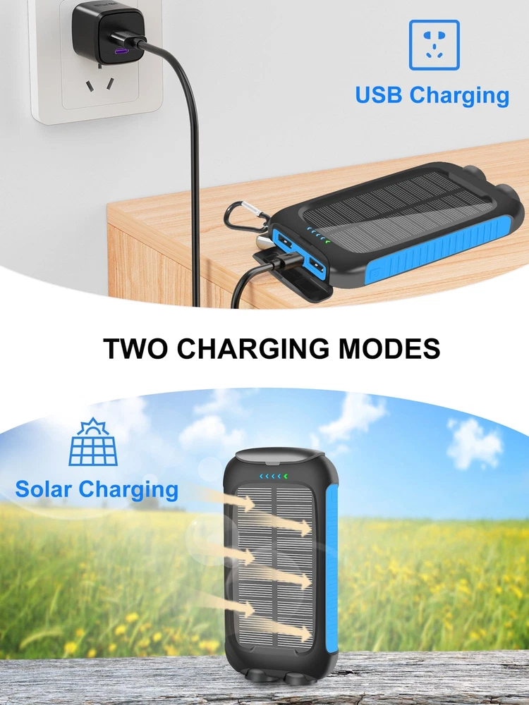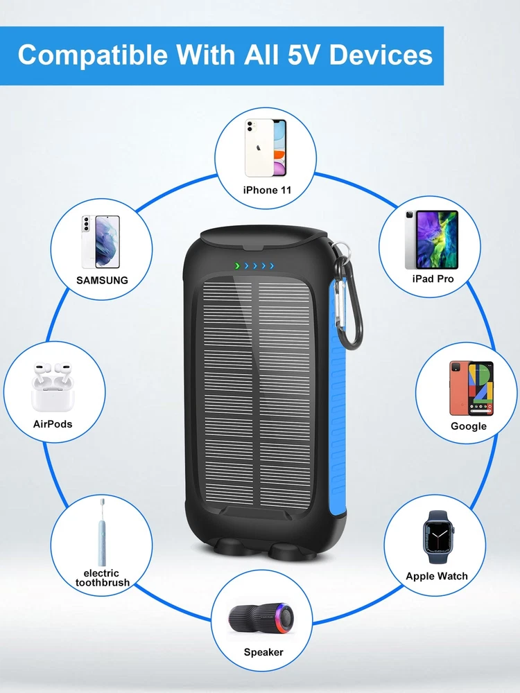 ๐High-Capacity Portable Charger Power Bank: Built-in high-quality lithium polymer battery, Battery Pack It has passed certifications like UL, CE, FCC, RoHS, and UN38.3. But in powerful safety system provides temperature protection, over-voltage protection, over-current protection, short-circuit protection, etc. It can stabilize the equipment and ensure its safety in use. ๐ Fast Charging & Widely Compatible Solar Charger: The Power Bank mobile power supply has a built-in USB C input/output and USB A&B output, which can charge 3 devices at the same time. Kepswin solar phone chargers are compatible with most USB devices, such as iPhones, iPads, and other Android phones. At the same time, it is also a friendly choice for family and friends during festivals, such as Halloween, Thanksgiving, New Year's Day, Valentine's Day, Mother's Day, Father's Day, etc. ๐Solar Charger Power Bank for Outdoor Activities: The power bank has a built-in three modes LED flashlight (Steady-SOS-Strobe ), and lighting time can last up to 100+ hours when fully charged. Whether it is daily life, travel, hurricane prep, outdoor camping, cycling, fishing, hiking, kayaking, etc. This portable charger power bank will all become part of your "traveling essentials bag". ๐USB & Solar Charging Modes: The Solar charger is powered by a 5V/3A adapter or solar. Although the solar charging function is useful in emergencies, it is worth noting that due to the small size of the solar panel and the large capacity of the mobile power supply, the charging speed is affected by changes in sunlight intensity and panel conversion rate. Charging a battery pack using solar panels can take a long time. The primary way to charge the power bank is via USB. ๐Outdoor Waterproof Portable Design: The power bank has a protective cover attached to the outside of the charging/discharging port, so it has a waterproof and dustproof function. In addition, it comes with a carabiner clip that you can hang on your backpack, perfect for outdoor camping, hiking, traveling, cycling, fishing, beach, etc. What you will get: 1*38800 mAh Solar Power Bank, 1*USB Cable, 1*Carabiner, 1* Users Manual, 24-hour friendly customer service.