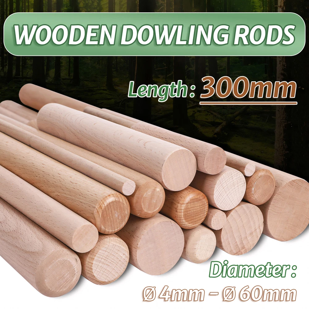 Ø 4mm to 60mm Beech x 30cm Wooden Dowling Rods, Craft Sticks Rods, Dowels DIY