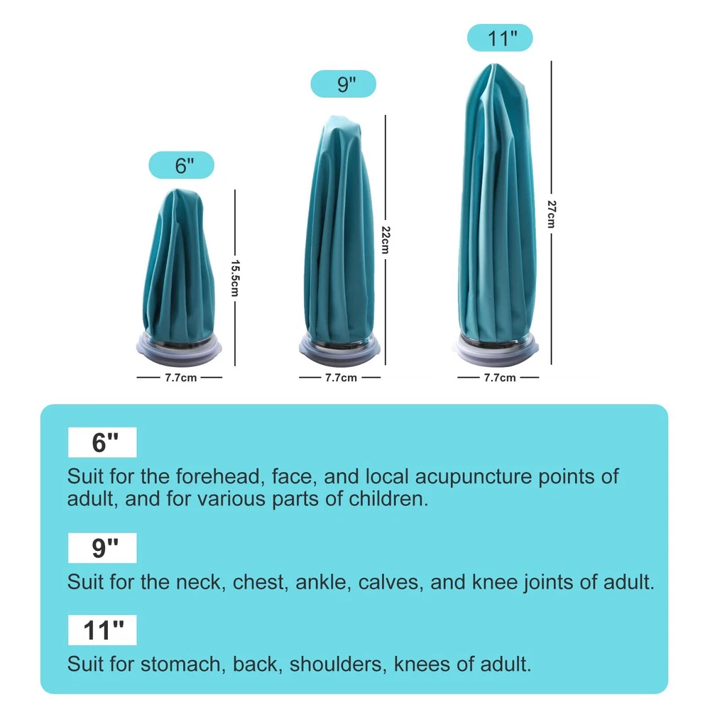 Perfect Size: [Medium (9 inches) ice pack is suitable for children, teenagers, adult men and women, and the elderly. Please choose the right size ice pack according to the size of the painful area Leak-proof Cap with Large Mouth: The ice pack is made of high-quality materials. Screw cap design with large opening and rubber sealing ring. Easy to fill with ice cubes and strong leak-proof ability. Soft textiles make the ice pack keep cold and hot compresses much longer than gel packs Easy to Use: When cold compress, add the right amount of ice cubes and water, and apply the ice bag to the desired area. When Hot compress: Add hot water to the ice pack.(Note: Do not use boiling water for heat therapy. The temperature is 50-60℃/122℉-140℉.) Hot Cold Therapy: Cold compress is suitable for sports injuries, fever, headache, swelling, toothache, sprain, strain, bruise, etc., and hot compress is suitable for relieving muscle soreness, menstrual cramps, etc Easy to Carry: The ice pack bag is foldable, lightweight, waterproof, and flexible to carry. You can easily carry it wherever you go. Ice packs can be used to relieve pain from sprains caused by exercise, headaches caused by hangovers during the weekend or holidays, and muscle soreness caused by shoulder and neck fatigue due to work