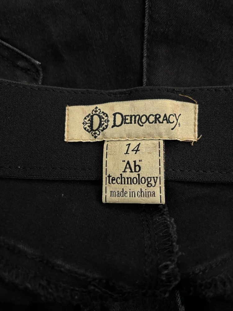DEMOCRACY • Women’s Ab Technology Black Stretch Waistband Skinny Jeans Cotton/Polyester/Rayon/Spandex Size 14 Rise 9.5” Inseam Length 28” Good Condition - Minimal Wear