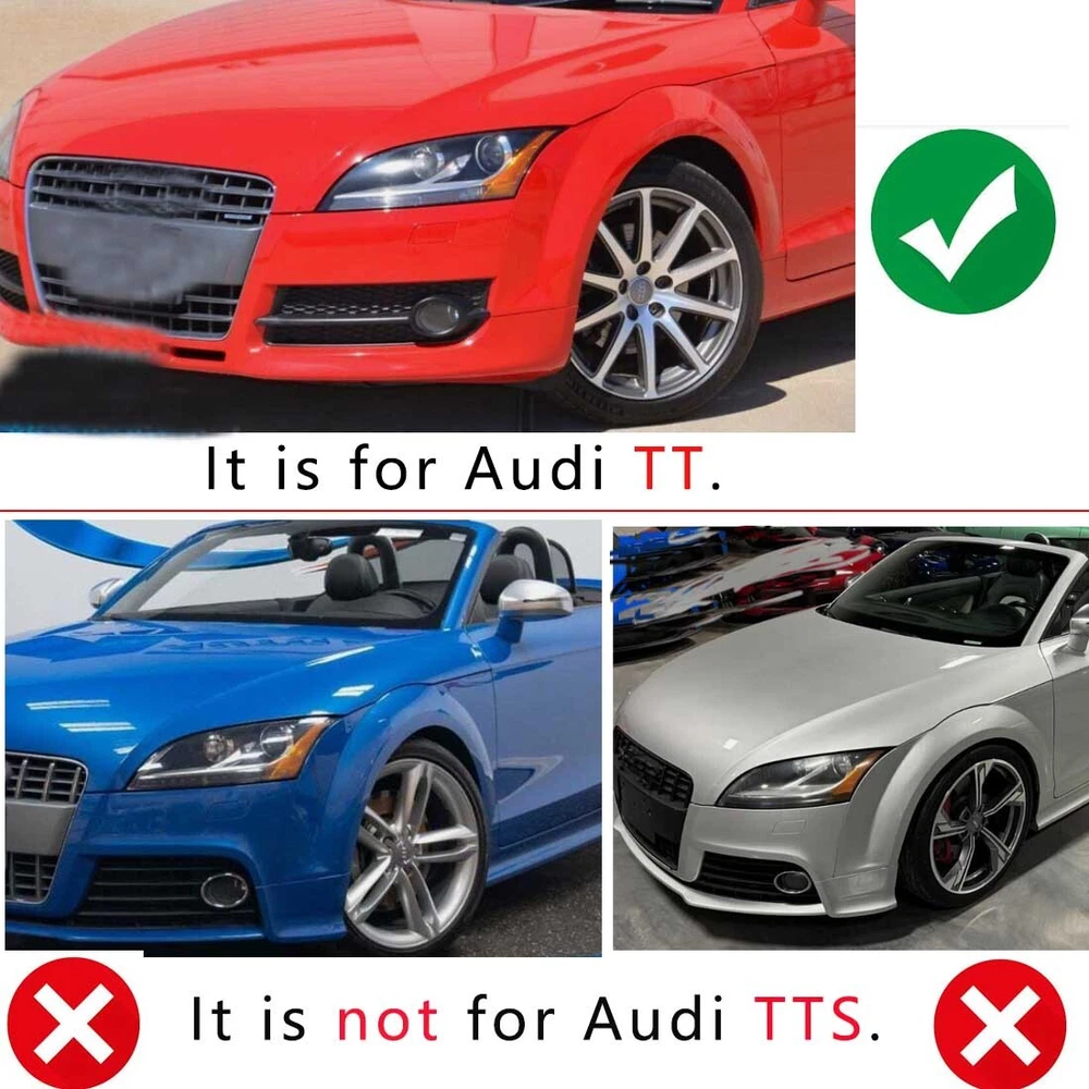 Professional Auto Parts Seller For Audi TT 8J 2006-2010 Fog Light Lamp Cover HONEYCOMB HEX Front Grille Grill Package include: 1pair HONEYCOMB Front Grille(Left & Right) Fitment: -Only Fit For Audi TT 8J Standard Bumper 2006-2010 -Not Fit S-LINE Models, Not fit Audi TTS. -IF you are not sure ,please contact us!! Specification: -Type: HONEYCOMB RS Style Front Grille -Material: high quality ABS Plastic -Color: Gloss Black -Placement on Vehicle:Front, Left, Right -Manufacturer Part Number:8J0807682 01C / 8J0807681 01C -Reference OE/OEM Number:8J080768201C / 8J080768101C Feature: -Functional open mesh that matches the main grille! Don't waste your money on the ugly closed mesh version that other sellers carry! -Made of high quality ABS plastic - same material as OEM! -Excellent fitment - direct replacement for your stock grilles! -This listing is for one pair (1 left & 1 right). -Strict quality control standards to Build and test. -No instruction included.Professional installation recommended. Notice: - Please allow 1-3CM differs due to manual measurement. - Due to the different display and different light, the picture may not reflect the actual color of the item. Thanks for your understanding. Payment 1. Please contact us first to solve if there is any problem about item before left feedback, many thanks. 2. We accept PayPal, G Pay, VISA, Master Card which permitted by eBay. 3. Our price does not include Duties, Value Added Taxes, Customs Clearance Fees, and other charges. These charges are the buyer's responsibility. 4. Please check with your country's customs office to determine what these additional costs will be before bidding/buying. Shipping 1. Item will be dispatched within handling time after payment. Normally delivered within 15~25 working days. 2. This is for USA, CANADA, AUSTRALIA, EU, ASIAN Countries. For the other countries, it may take more time to arrive. 3. Shipping time may vary depends on your area. Delivery may be delayed due to extreme weather or special circumstances. Please wait patiently. 4. Return are accepted within 30 days of purchase. Contact US 1. Please message us through eBay if you have any questions. 2. All Emails and messages will be replied to ASAP during open hours. (Monday to Saturday 9:00am - 6:00pm) 3. If you have any quality problems or you are not pleased with the purchase, please contact us through Email. 4. We will be happy to assist you if any items need to be returned or replaced.