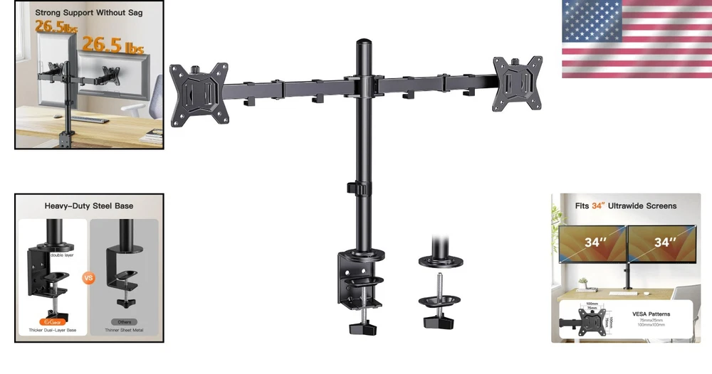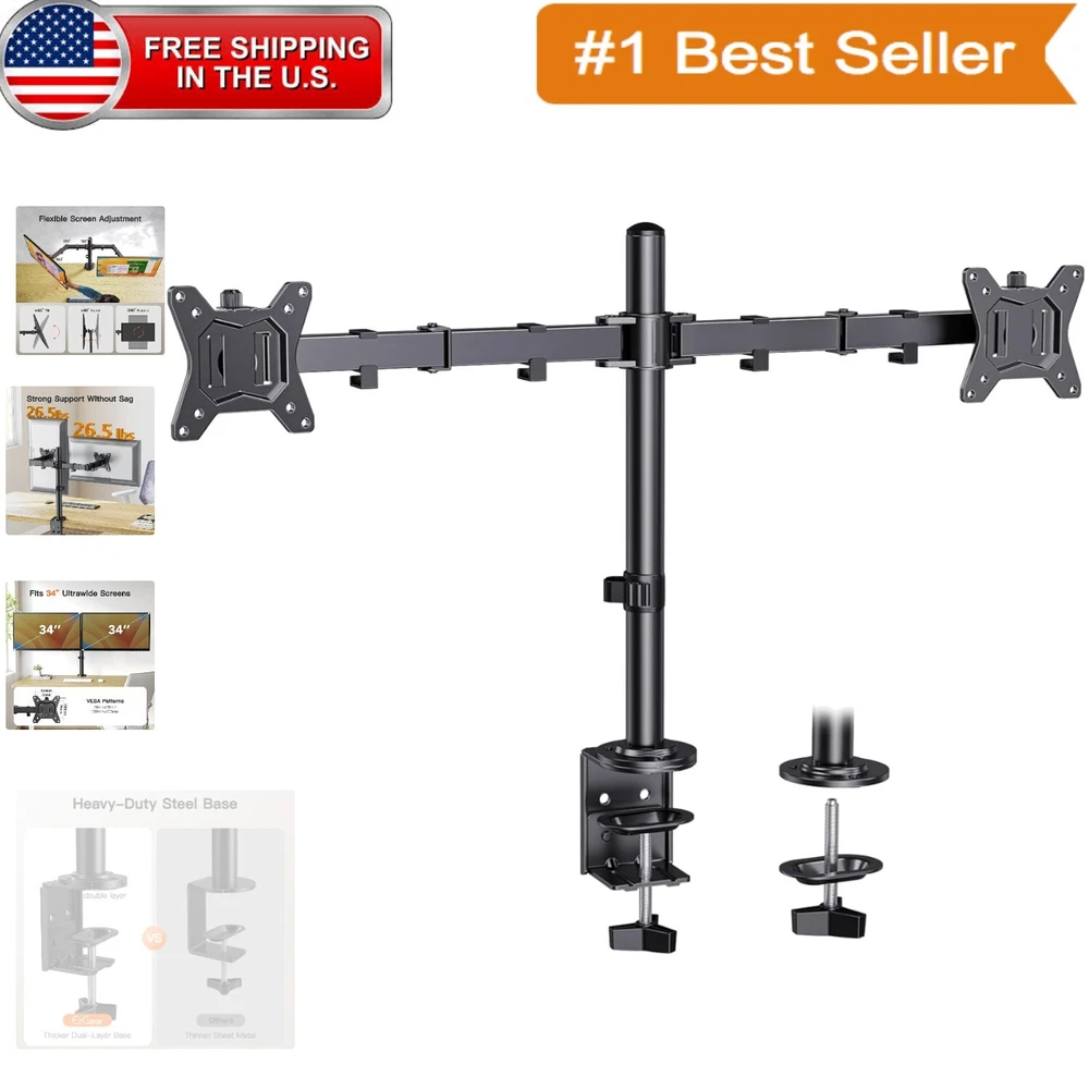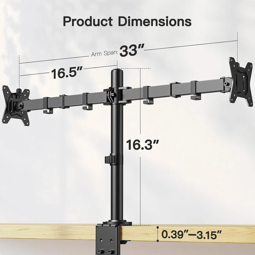 Space-Saving Dual Monitor Desk Mount with C-Clamp & Grommet - Adjustable Design ‹ › ‹ › ‹ › ‹ › ‹ › ‹ › ‹ › ‹ › ‹ › Space-Saving Dual Monitor Desk Mount Features: Robust stability crafted from high-quality cold-rolled steel with a thicker dual-layer base. Each arm securely holds up to 26.5 lbs without wobble or sag. Wide 33" arm span and tall 16.3" pole accommodates two 34" ultrawide monitors. Compatible with VESA patterns 75x75mm and 100x100mm. Ultimate flexibility with adjustable +/-90° swivel, +/-45° tilt, and 360° rotation. Integrated cable management for a clean workspace. Two installation options: C-clamp or grommet mount. Benefits: Enjoy unparalleled stability without the worry of shaking or dropping monitors. Transform your workspace with adjustable viewing angles to reduce neck and eye strain. Free up desk space for other essential devices, enhancing efficiency. Simple and customizable setup for individual preferences. U.S.-based product support team available for any inquiries. Why Choose Our Dual Monitor Desk Mount? Upgrade your workspace with our Space-Saving Dual Monitor Desk Mount that promises unparalleled stability and versatility. Crafted from high-quality materials, this robust mount securely holds your monitors while offering customizable positioning for ergonomic viewing. Whether you're working, gaming, or multitasking, enjoy the freedom to adjust your screens with ease. With integrated cable management and dual installation options, you can create a clean and efficient workspace that maximizes focus and productivity. Don’t compromise on comfort - choose our monitor mount and elevate your desktop experience! Shipping Free & Fast Shipping - We offer free shipping to most of the USA with a normal delivery time of 3-7 days. However, due to the current situation, additional delivery time (up to 3 weeks) may be required for some items. Alternative Carriers - We may use alternative carriers (e.g. USPS, FedEx, UPS, etc.) to ensure your package arrives safely and on time. Due to the use of multiple carriers, we are unable to provide a tracking number automatically. Handling Time - Orders are processed and shipped within 1-2 business days of receiving cleared payment. Shipping Restrictions - Shipping to Alaska, Hawaii, Puerto Rico, Guam, and other US territories may incur shipping charges or delivery restrictions. Please contact us before ordering, or your order can be refunded/cancelled. State Restrictions - There may be restrictions based on your state of purchase. For example, certain items may not be shipped to California due to state regulations. Contact for Tracking Updates - If you require tracking updates or have any concerns about the delivery of your order, please feel free to contact us, and we will be happy to assist you. Return 30-Day Hassle-Free Returns - We want you to be completely satisfied with your purchase. If you are not, you can return the item within 30 days of receiving it for a full refund or exchange. Easy Return Process - To start a return, simply contact us and we will provide you with a prepaid return shipping label and detailed instructions. Restocking Fee - There are no restocking fees for returns. However, the buyer is responsible for return shipping costs if the return is not due to a seller's error. Refund Processing Time - Refunds will be processed within 5 business days of receiving the returned item in its original condition. Payment We accept all major credit cards, PayPal, and Apple Pay for your convenience. Your payment information is secure and encrypted to ensure a safe and seamless transaction. Please complete your payment within 3 days of purchase to avoid any delays in shipping. Feedback Your feedback is extremely important to us. We strive to provide the best products and customer service possible. If you are satisfied with your purchase, please take a moment to leave us a positive review. If you have any concerns or issues with your order, please contact us before leaving negative feedback. We are committed to resolving any problems and ensuring your satisfaction. Contact Us If you have any questions or concerns, please feel free to reach out to our customer support team. You can contact us through the eBay messaging system. We are available Monday to Friday, 9:00 am to 5:00 pm EST, and we will do our best to respond to your inquiry within 24 hours. Thank you for supporting our small family business! UPC: Not Set Unit Quantity: 7.39 Item Height: Dual Monitor Desk Mount Item Length: Dual Monitor Desk Mount Item Width: Dual Monitor Desk Mount To Fit Screen Size: Not Set VESA Size: Not Set Features: Not Set Compatible Product Line: Not Set Brand: Unbranded Type: Desk Mount Number of Monitors: 2 Color: Black Adjustment: Tilt & Rotate MPN: Not Set Unit Type: lb Country/Region of Manufacture: Not Set Manufacturer Warranty: Not Set