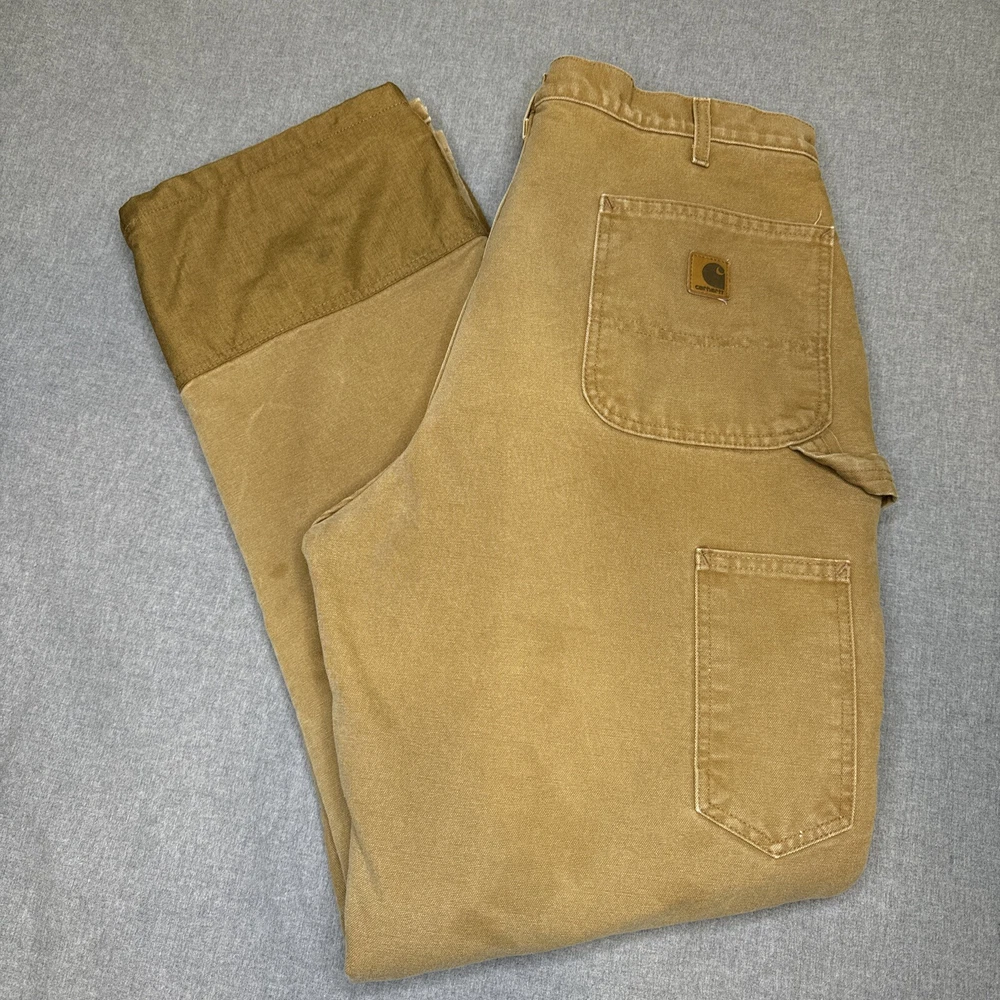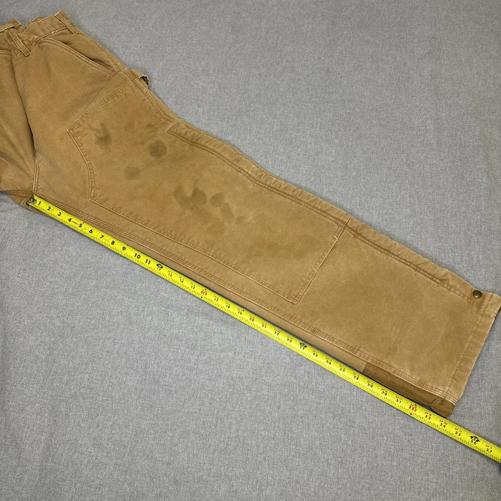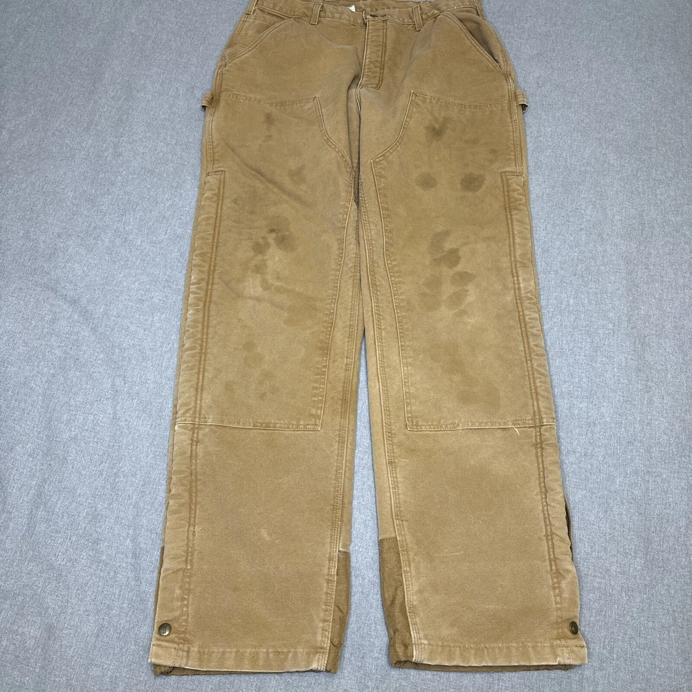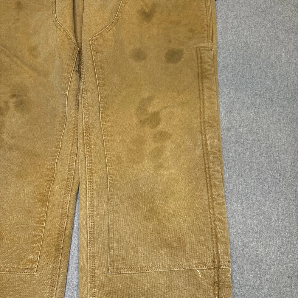 These Carhartt B157 BRN work pants are perfect for both casual and workwear occasions. Made of durable duck canvas material with a sherpa lining, they are heavyweight and perfect for winter, fall, and spring seasons. They come in a size 38 waist and hard to find 34 inseam. Pants are in excellent structural condition with no rips, tears or fraying. There are stains and fading on several spots on the pants, see photos for details. Fast one day handling. Shipped via USPS ground advantage. Unsatisfied for any reason? 30 day return policy offered with no questions asked. Thanks for looking!