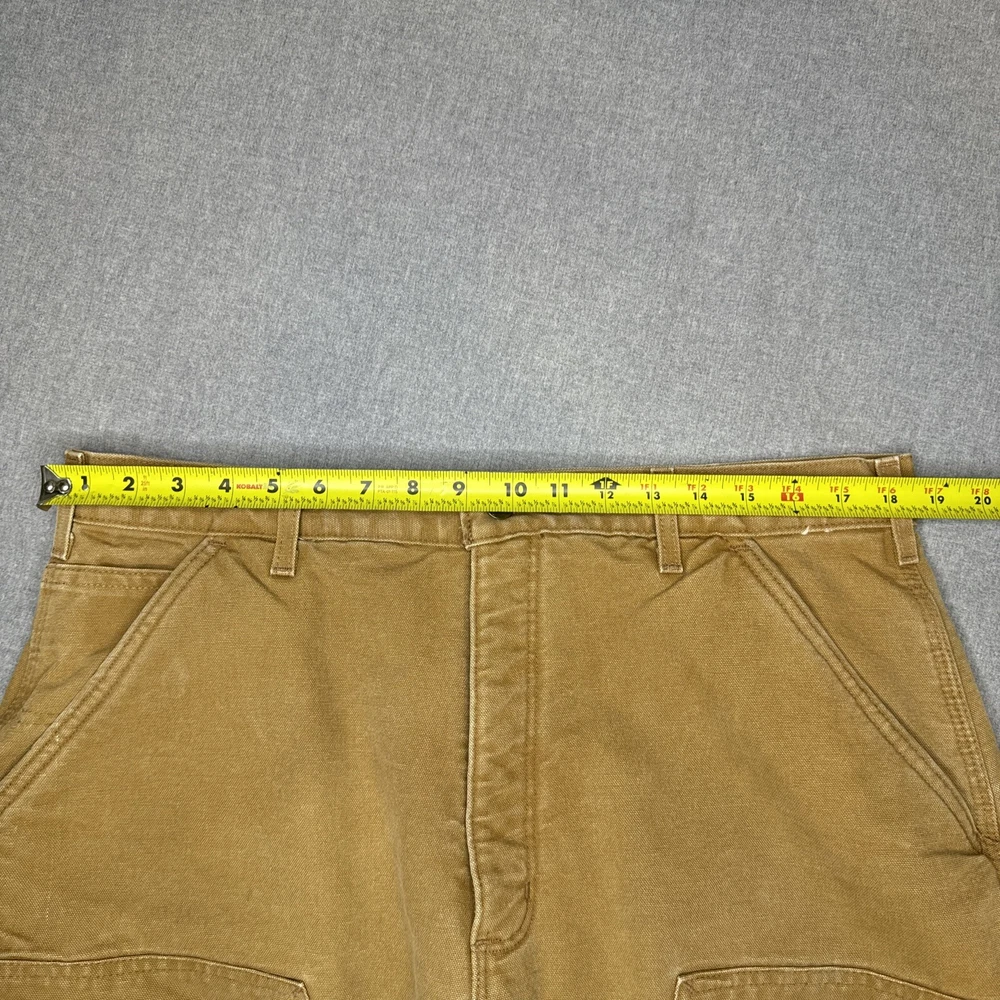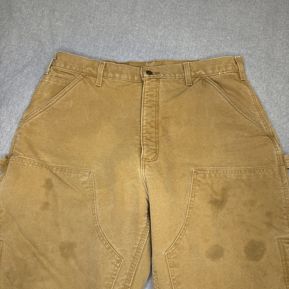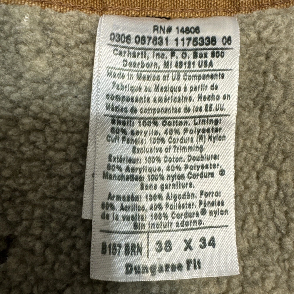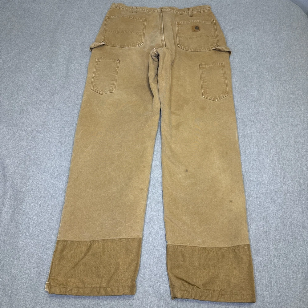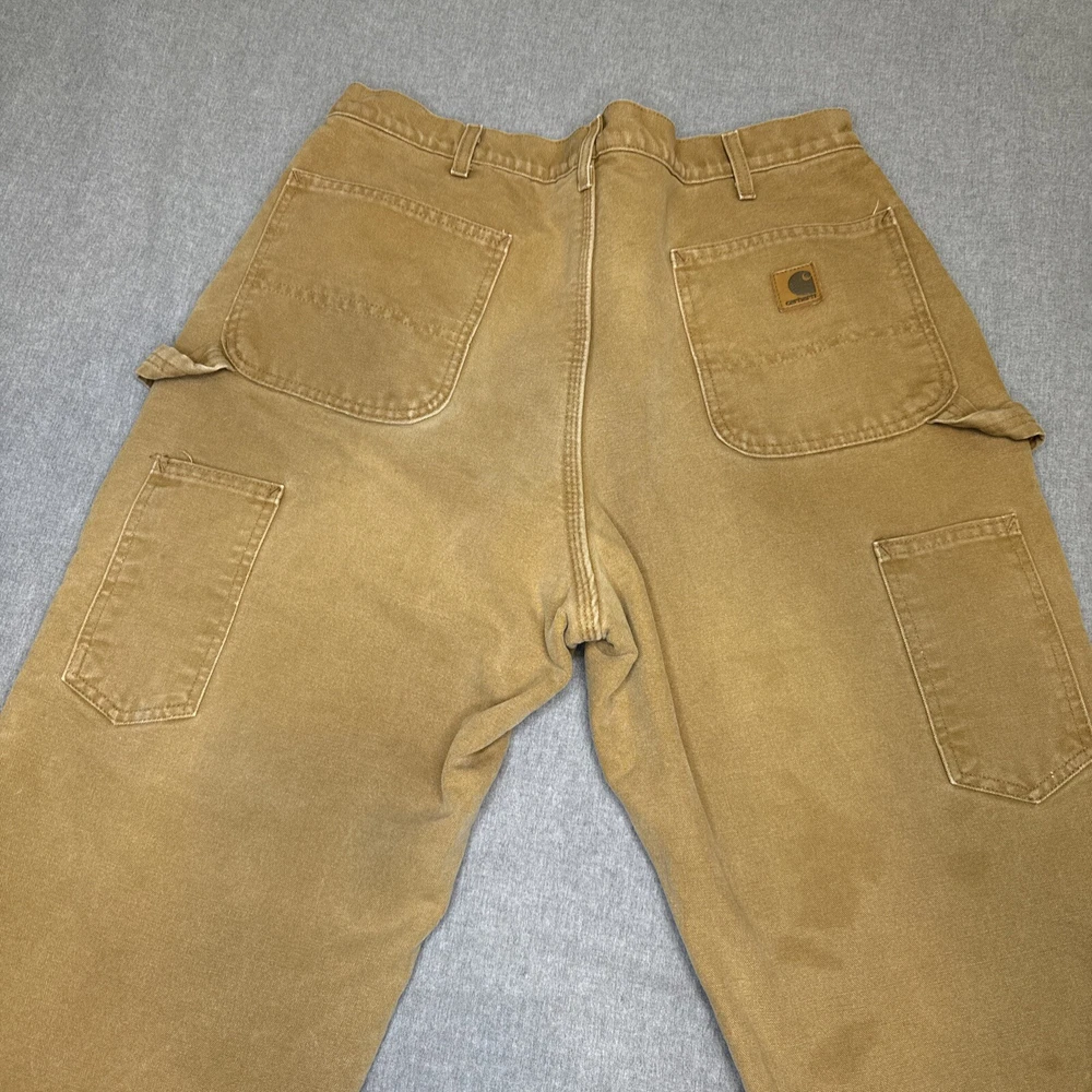 These Carhartt B157 BRN work pants are perfect for both casual and workwear occasions. Made of durable duck canvas material with a sherpa lining, they are heavyweight and perfect for winter, fall, and spring seasons. They come in a size 38 waist and hard to find 34 inseam. Pants are in excellent structural condition with no rips, tears or fraying. There are stains and fading on several spots on the pants, see photos for details. Fast one day handling. Shipped via USPS ground advantage. Unsatisfied for any reason? 30 day return policy offered with no questions asked. Thanks for looking!