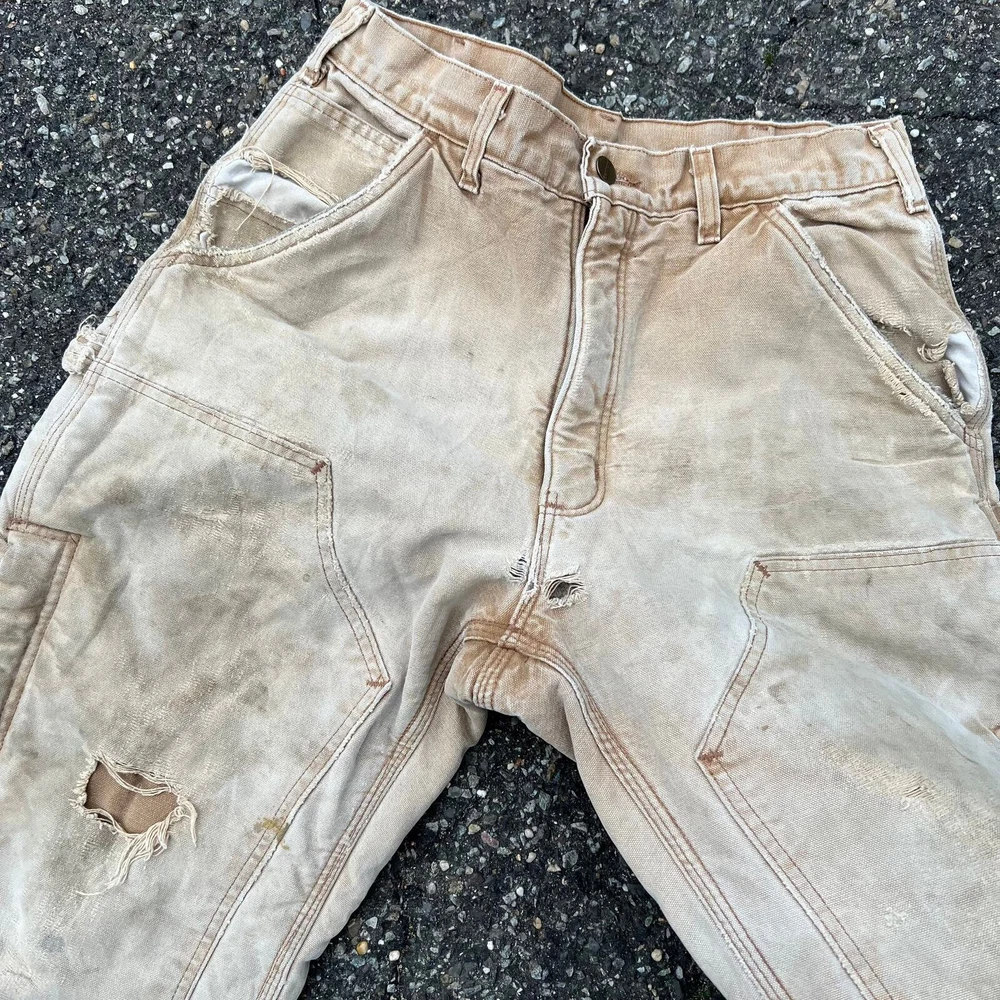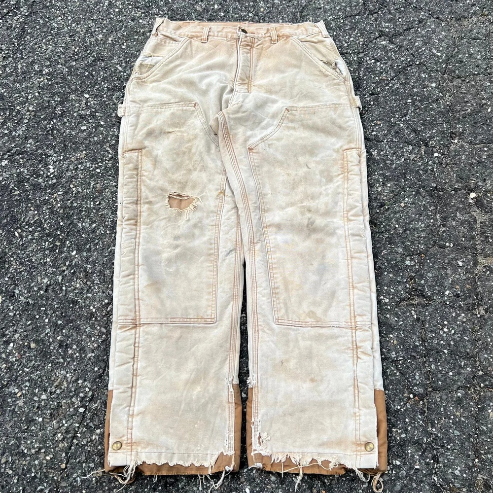 Vintage carhartt brown lined double knee work wear carpenter pants. Great pair. Measure 30x29 and a 9.25 leg opening. Please check measurements before purchasing. I do my best to show any flaws in pictures. Quick shipping! Bundles encouraged! @ants_haul on Instagram. 415!!!