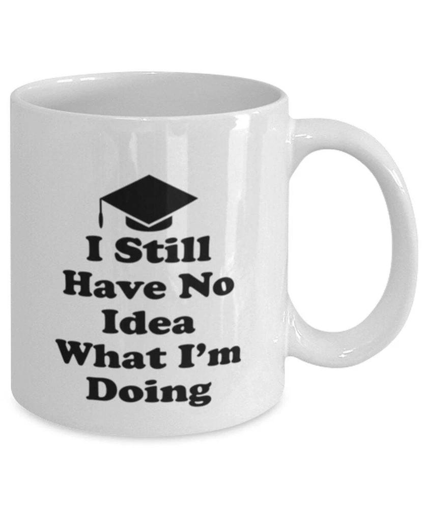 Funny Graduation Coffee Mug I Still Have No Idea What I'm Doing Graduation Mug Product Details.. This high quality 11oz. ceramic white mug has a premium hard coat that provides crisp and vibrant color reproduction sure to last for years. Perfect for all hot & cold beverages. The highest quality printing possible is used. It will never fade no matter how many times you wash it. Material: 100% Ceramic. Print both sides. Dishwasher and Microwave Safe. High Gloss + Premium White Finish. Printed in the U.S.A. Personalized & Custom. We support personalized and custom mug to add custom, when placing an order, you can add notes to the "order note" in shipping address section. Also you can contact us directly via message. Shipping Info. Ready to ship in 1 to 2 business days, All products are made-to-order and proudly printed in the United States. Shipped by USPS and DHL, You will receive your order in 5-7 days. Replace & Refund. All products are defective during shipping broken, chipped will be replaced free of charge. You are not satisfied with the product, we will refund 100% money to you. If any other issues arise, please do not hesitate to message, we would be more than happy to assist you.