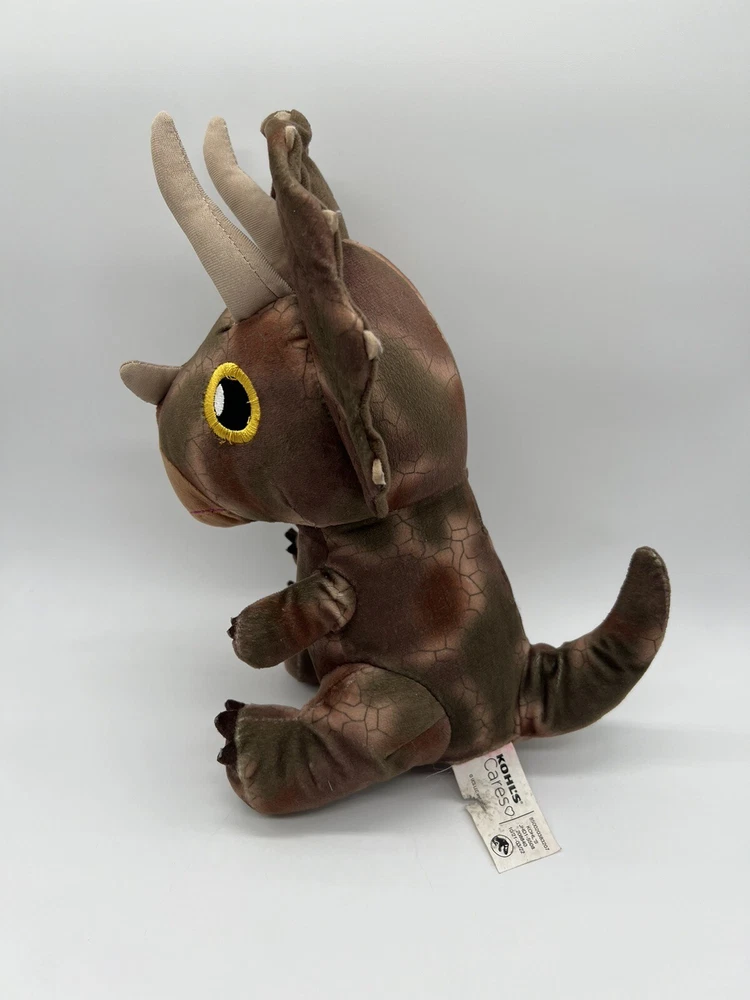 Kohls Cares Plush Dinosaur Triceratops 11” 2021 Brown Yellow Eyes Stuffed Toy Used. Item: N9