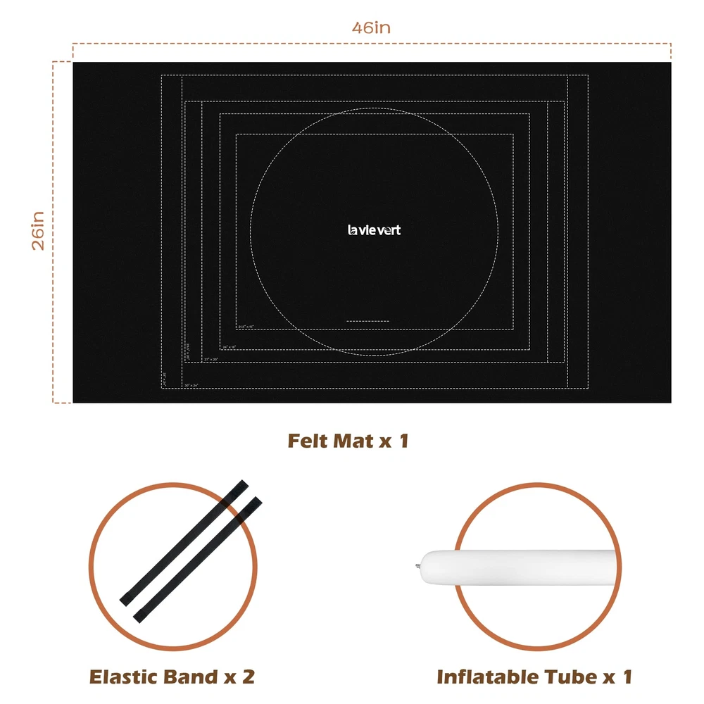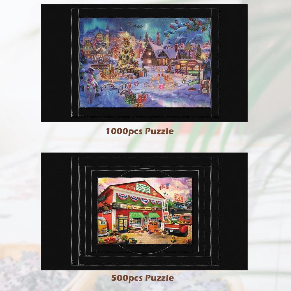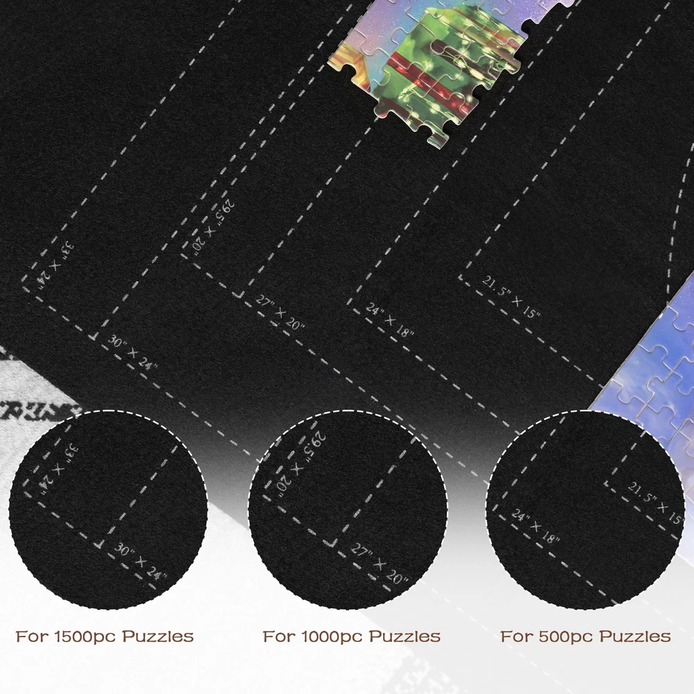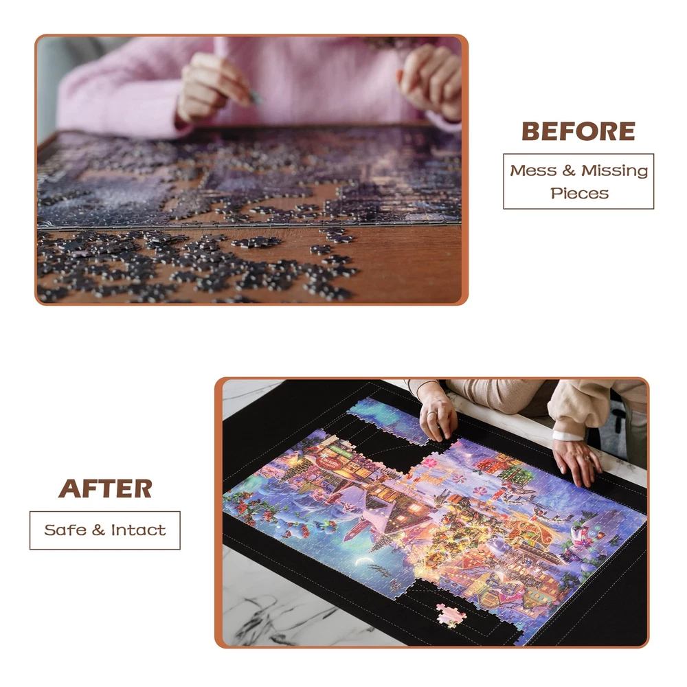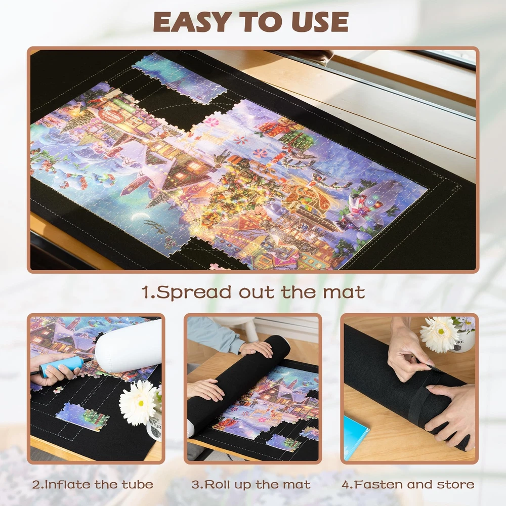 Lavievert 1500 Piece Jigsaw Puzzle Mat Roll Up with Unique Auxiliary Line Design, Portable Puzzle Board for Adults & Kids, Non-Slip Puzzle Keeper Storage Saver for 1500 1000 500 Piece Puzzles Color: black Size: 46 × 26in Holds Up To: 1,500 pcs Package Includes: felt mat × 1, inflatable tube × 1, elastic band × 2 How to inflate the tube: Squeeze to open the slit on the inside of the valve and blow air in to inflate the tube. Note: The package contains no jigsaw puzzles, please purchase separately. Lavievert puzzle mat is produced by eco-friendly felt fabric, capable of holding up to 1,500 jigsaw puzzles. It offers excellent protection to your puzzles and holds them still until next time you continue with your game. As it is universally known, the harder a riddle is, the more time and patience will be in need to crack it. Therefore, it is our hope to help you simplify the game and ensure you more fun with this product! Unique Auxiliary Line Design - Hoping to make puzzle games easier, especially for the elderly and children, we specially add auxiliary lines to the mat to effectively improve players’ efficiency. It is our invariable aim to provide you with products of premium fabric and in stylish designs. Unique Anti-leaking Design - Our tube is specially designed with an anti-leaking slit which allows it to last longer than other tubes in the market when inflated. Please squeeze the valve with your fingers to open the slit and blow air to inflate the tube. Practical Accessories - An inflatable tube is enclosed to make sure your unfinished puzzles are stored perfectly for the next time. To further protect your puzzles from shifting, two elastic bands are enclosed to fasten both ends of the roll. Measuring 46 × 26in and holding up to 1,500 pieces, Lavievert non-slip felt mat ensures every jigsaw puzzle stay put without no creases. Easy To Use - Just spread and flatten the felt mat on a smooth and level surface, then you can start your puzzle game. If you want to pause and save the unfinished game for the next time, place the inflated tube at either end of the mat, roll up the mat by applying even pressure, and then fasten both ends with the elastic bands. Package Contents - felt mat × 1, inflatable tube × 1, elastic band × 2. Comes in exquisite packaging and serves an excellent present choice for people of all ages. Please note that package contains no jigsaw puzzles. Shipping from the USA All of our products are shipped from the USA, ensuring quick delivery to your destination. Payment We offer the following payment methods: PayPal, credit card, bank transfer, and eBay's secure payment system. Free Shipping & Free Returns Shipping within the USA is FREE. Additionally, any return is absolutely free for you. Risk-Free Purchase You have the option to return an item within 30 days without any justification. We cover the return shipping costs! Fast Shipping We ship immediately upon receipt of payment. Generally, the package is delivered within 2-3 days in the USA. If it takes longer, we will contact you. Quality and Costs Made in Europe, USA, China No customs fees or additional charges Total satisfaction guarantee Invoice with declared VAT available upon request in .pdf format Feedback Your feedback is very important to us. After you pay for your purchase, you will automatically receive positive feedback from us.