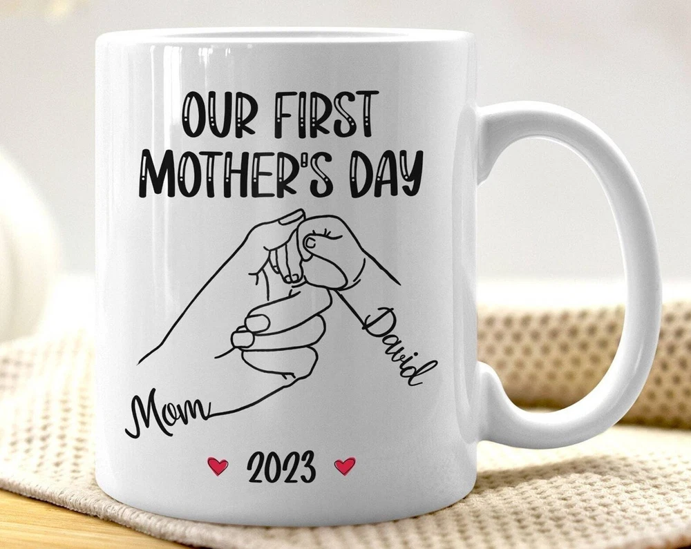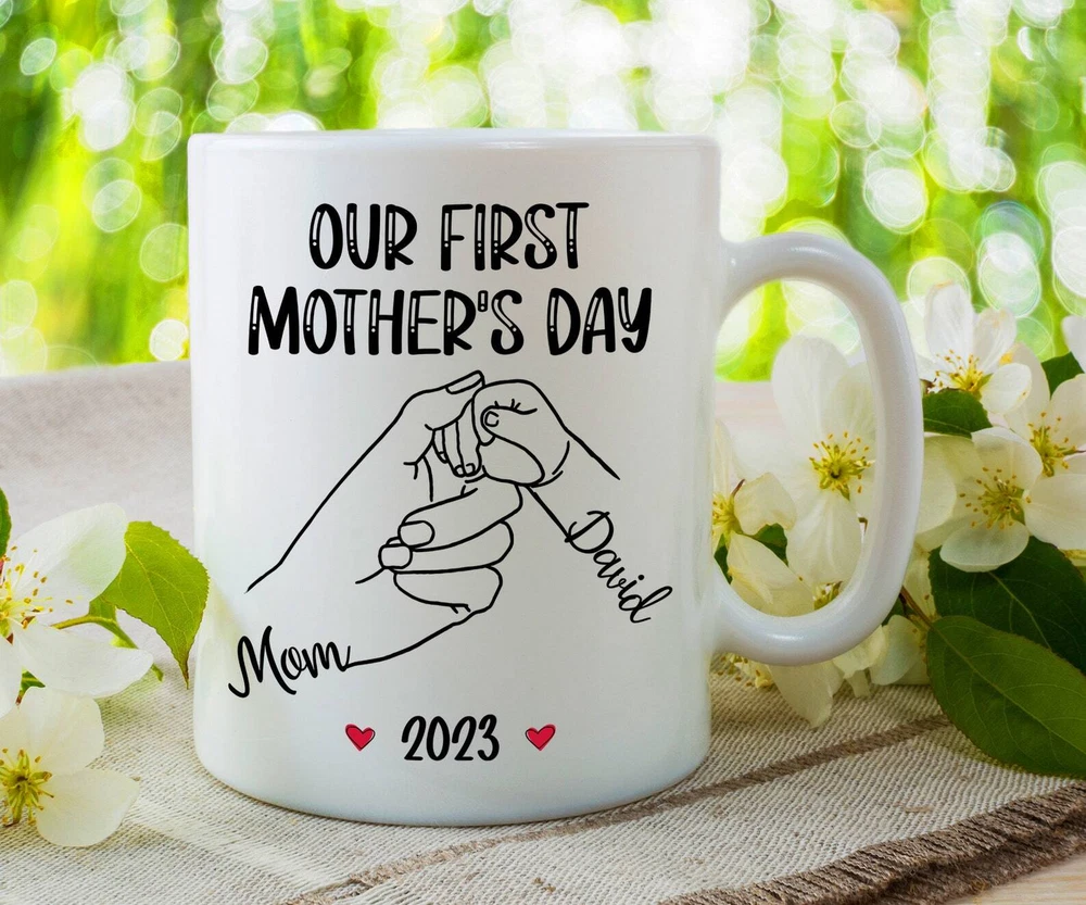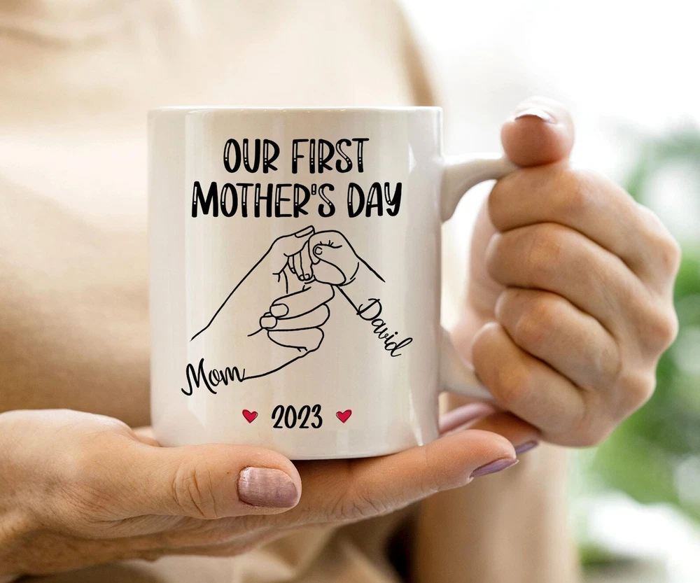 Custom First Mother Day Gift First Mother Day Mug Mom And Baby Mug First Time Mom Gift Mom Est 2023 Gifts Gift For New Mom Product Details.. This high quality 11oz. ceramic white mug has a premium hard coat that provides crisp and vibrant color reproduction sure to last for years. Perfect for all hot & cold beverages. The highest quality printing possible is used. It will never fade no matter how many times you wash it. Material: 100% Ceramic. Print both sides. Dishwasher and Microwave Safe. High Gloss + Premium White Finish. Printed in the U.S.A. Personalized & Custom. We support personalized and custom mug to add custom, when placing an order, you can add notes to the "order note" in shipping address section. Also you can contact us directly via message. Shipping Info. Ready to ship in 1 to 2 business days, All products are made-to-order and proudly printed in the United States. Shipped by USPS and DHL, You will receive your order in 5-7 days. Replace & Refund. All products are defective during shipping broken, chipped will be replaced free of charge. You are not satisfied with the product, we will refund 100% money to you. If any other issues arise, please do not hesitate to message, we would be more than happy to assist you.