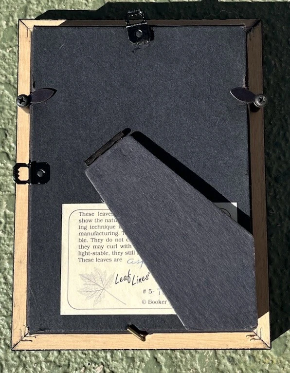 Item Width: 1 in Time Period Manufactured: 1990-1999 Framing: Framed Item Length: 6 in Artist: Booker Morey Style: 3D Features: One of a Kind (OOAK) Unit of Sale: Single Piece Theme: Art Handmade: Yes Country/Region of Manufacture: United States Region of Origin: California, USA Certificate of Authenticity (COA): Yes Type: Collage Item Height: 8 in Original/Licensed Reproduction: Original Size: Small Production Technique: Mixed Media Period: Contemporary (1970 - 2020) Year of Production: 1997 Signed: Yes Subject: Nature, Leaves Material: Glass