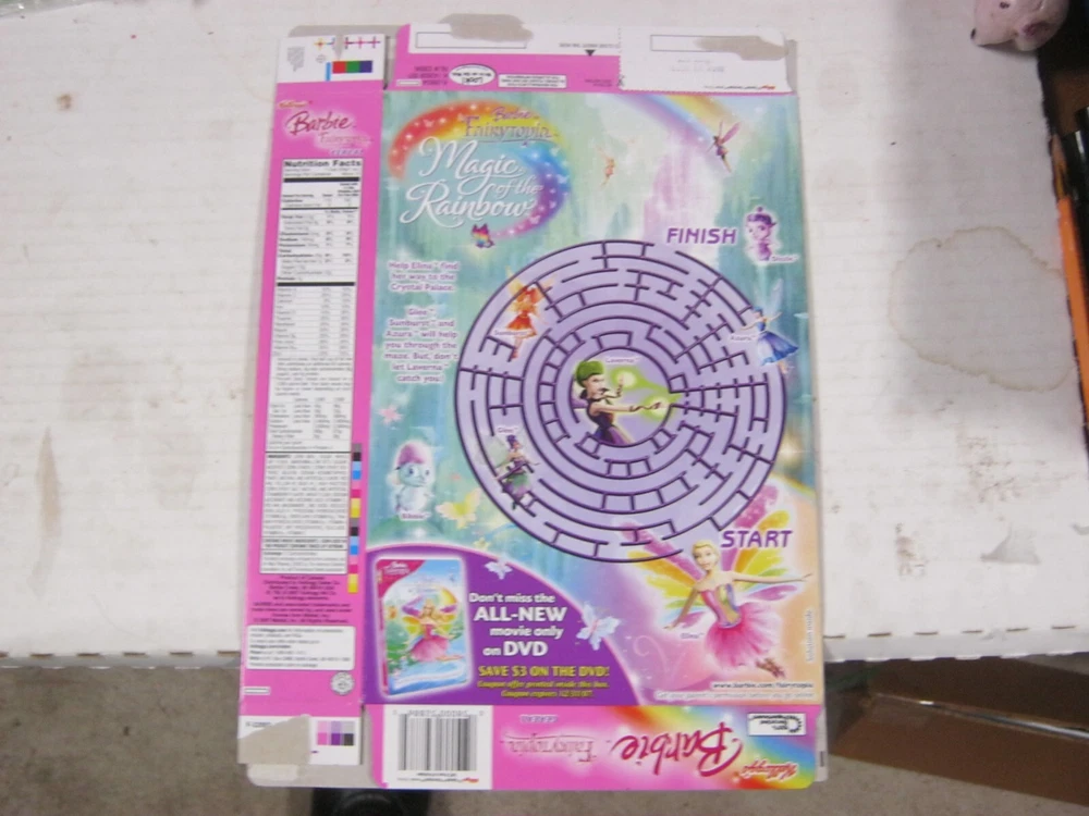 This is a 10.4 oz Size Kellogg's BARBIE Fairytopia ( Limited Edition) Cereal Box On back of box is a MaGIC OF THE RAINBOW GAME... BOX IS VERY COLORFUL... C 2007 Kellogg's Condition: MINT Postage $6.00 US Only