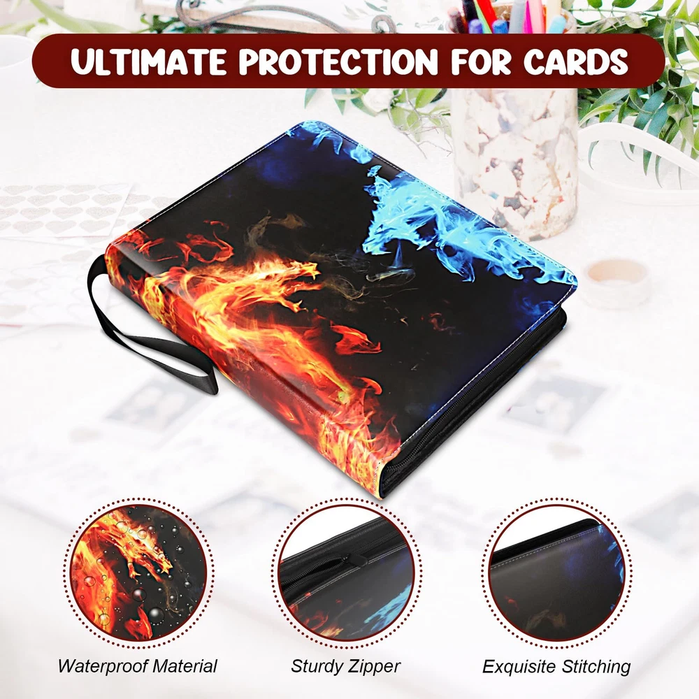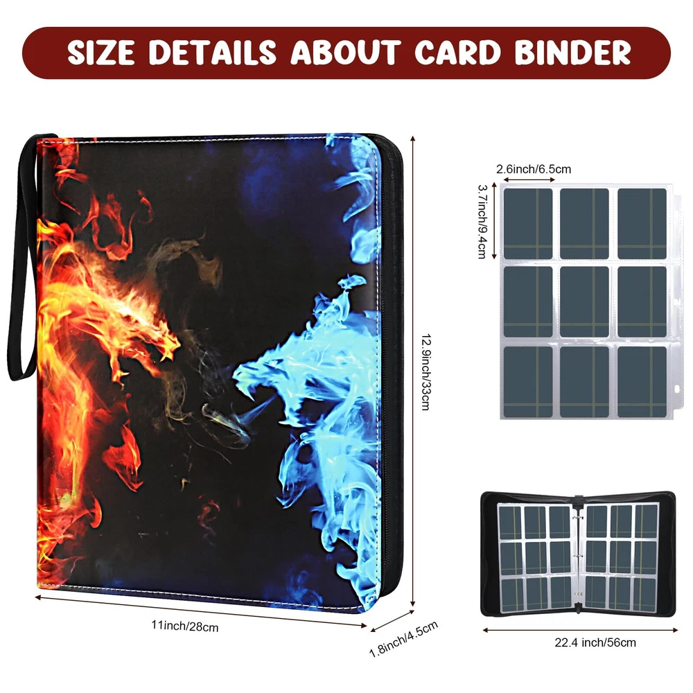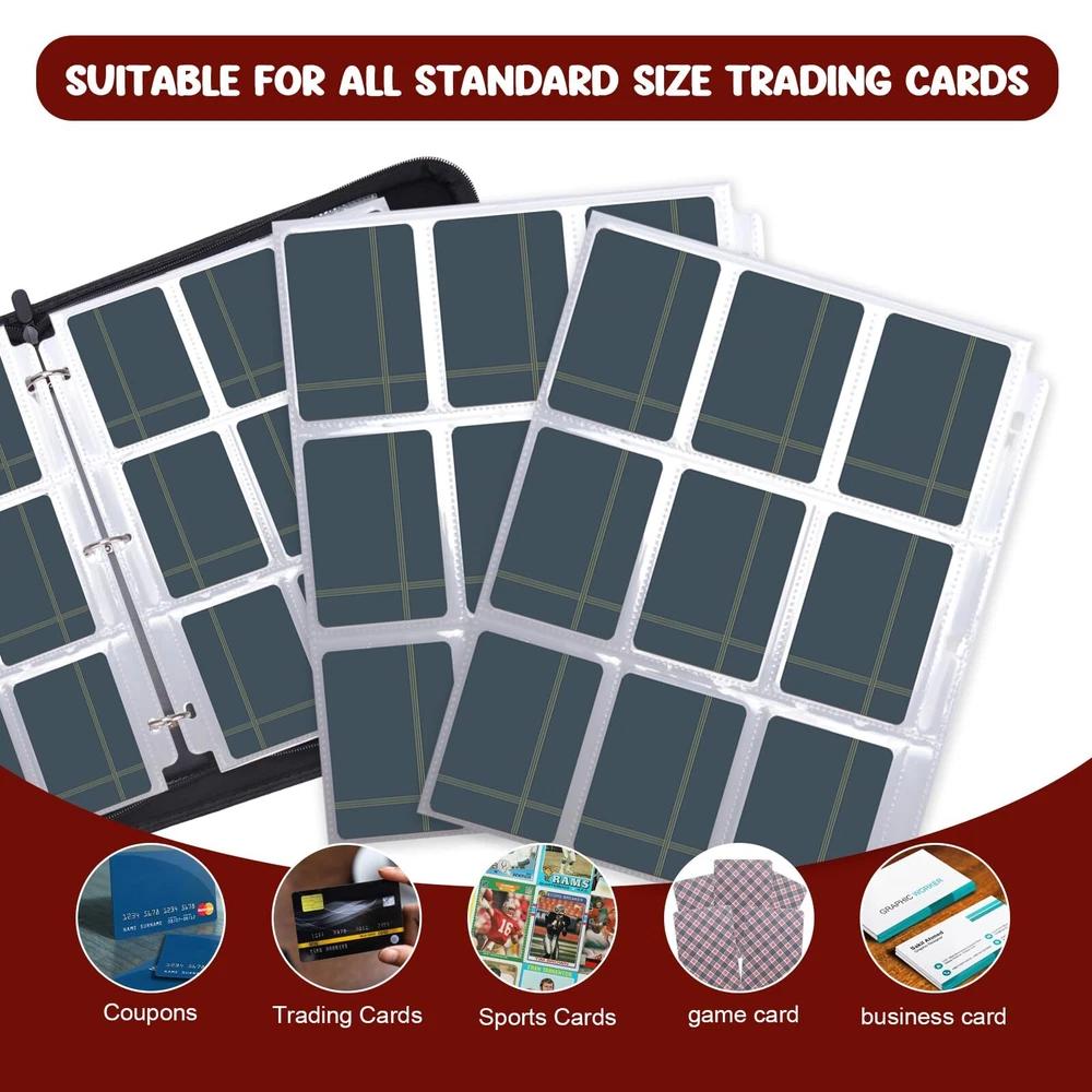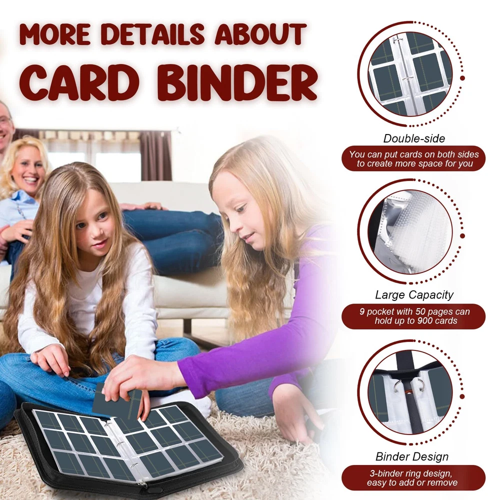 Premium Quality Material Card Binder - Our cards collection binder is made of waterproof PU leather, which is scratch-resistant, easy to clean, and built to last. The stainless steel 3-ring buckle ensures easy access to your cards, without scratching your hands. Add or remove card sleeves effortlessly for a customizable storage experience Multi-protection for Your Trading Cards - This album card holder adopts a closed zipper design to prevent the card from falling. The protective sheets are made of thick waterproof material, dust-proof and moisture-proof, which effectively protects the card from fading and staining Holds up to 900 Cards - The card binder 9 pocket has 50 double-sided protective sheets to hold up to 900 cards. Sports card binder can store and display all the trading cards you have, the cards can be stored in an orderly manner, instead of throwing them everywhere, which cultivates children's storage integration ability and help children develop good storage and organization habits Humanized Wristband Design - Card binder 900 pockets for baseball adopts a humanized wristband design, and you can hang it on your wrist when you go out, easy to carry Great for Various Cards - The card holder binder not only can store game cards, business cards, photos, and other standard-size cards but also can as present for Thanksgiving, Christmas, birthdays, and other holidays for children. The vivid cover can easily attract their attention and love this card protector binder