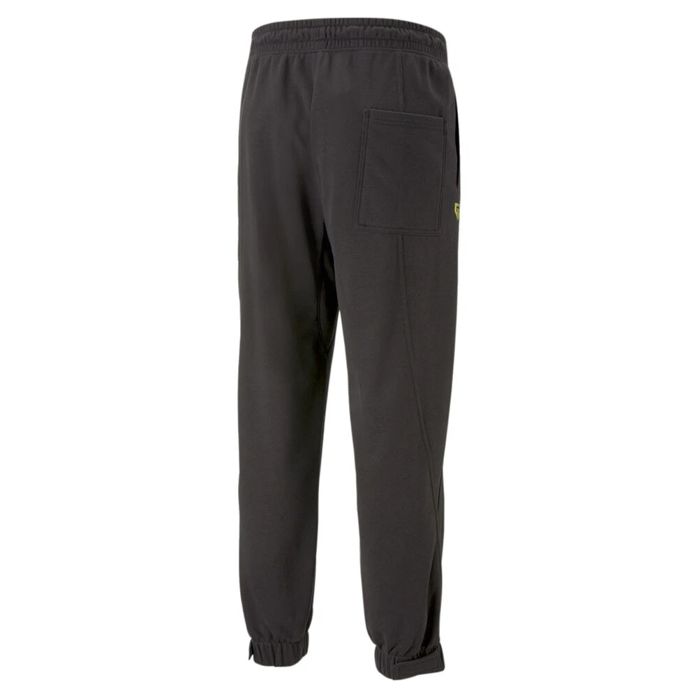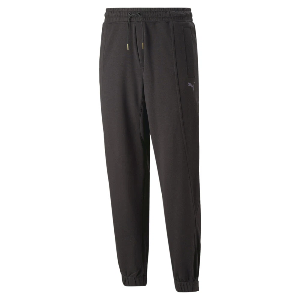 Gen.G X Esports Sweatpants Product Details Relaxed fit French terry jersey Elastic waist with drawstrings 2 side pockets, back slip-in pocket 68% Cotton, 32% Polyester Gear up for a long gaming session with these GEN.G sweatpants. They have a patchworked look and hook-and-loop adjustable cuffs, making them perfect for tournaments and all-night raids. Additional Details Color: Black Occasion: Casual Gender: Mens Age: Adult Brand: Puma