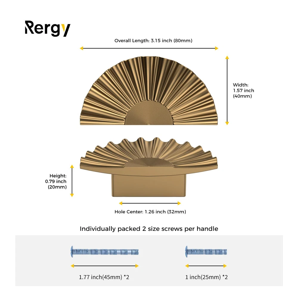 cabinet knobs [Detailed size]: The hole distance is 1.26in (32mm), the total length is 3.15in (80mm), the radius is 1.57in (40mm), and the height is 0.79inch (20mm). [Elegant shape]: Our champagne Bronze handle adopts a special semi -circular design. You can design and install methods according to your needs. No matter how you install it, it will not lose elegance. [Packaging content]: You will receive 6 packs champagne Bronze cabinet pulls with 12 installation screws 1Inch (25mm) and 12 bamboo -fled installation screws 1.77inch (45mm). [Durable and durable]: The kitchen drawer handle is made of strong zinc alloy. The alloy has high corrosion resistance and rust. Therefore, you don't have to worry about the life of the handle at all. [After -sales service]: Perfect products and after -sales service are our goals. If you are not satisfied with our brushed bronze cabinets, please contact us at any time. We will refund or replace you. Don't hesitate, buy immediately!