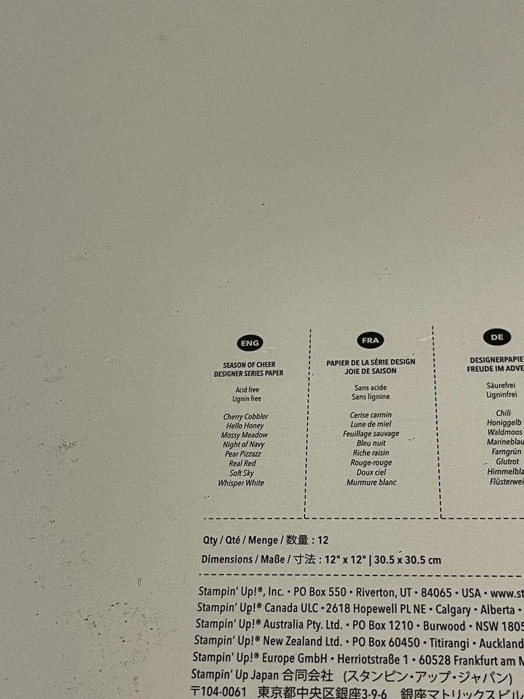Stampin' Up 12"x12" Designer Series Paper SEASON OF CHEER 12 Sheets DSP. Condition is New. Shipped with USPS Ground Advantage.