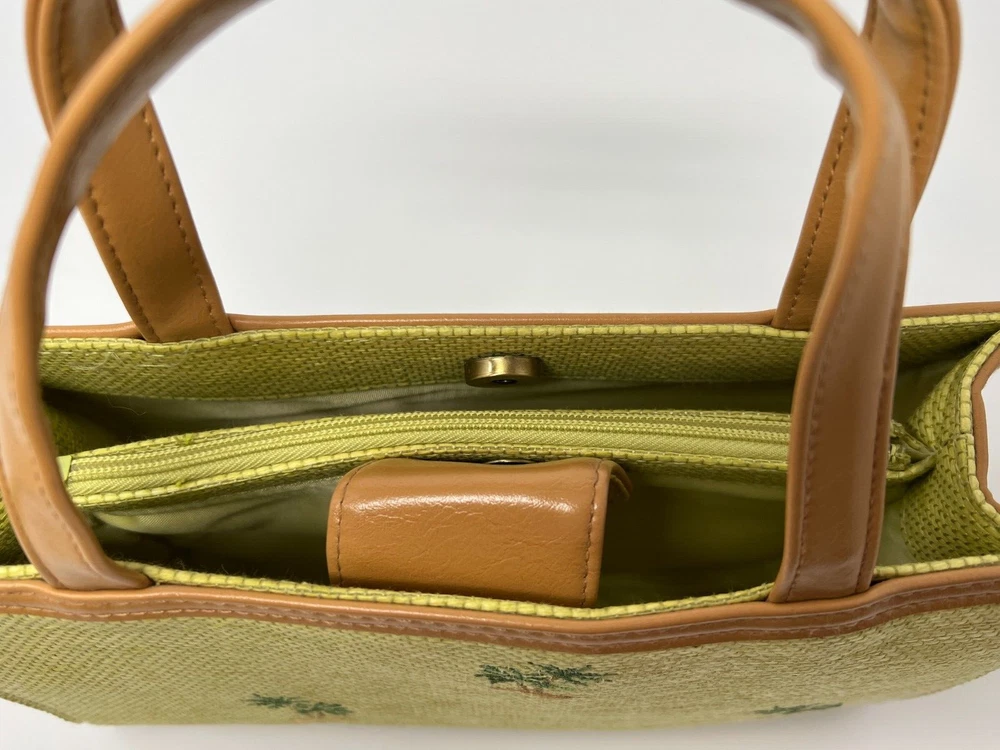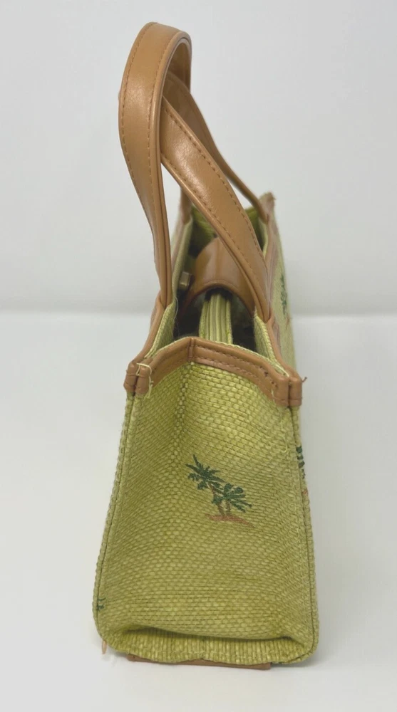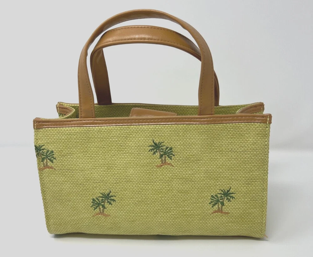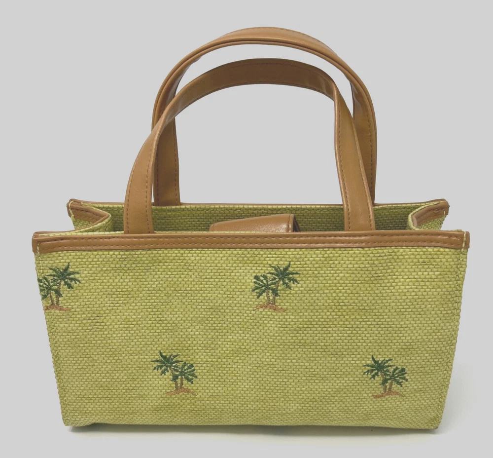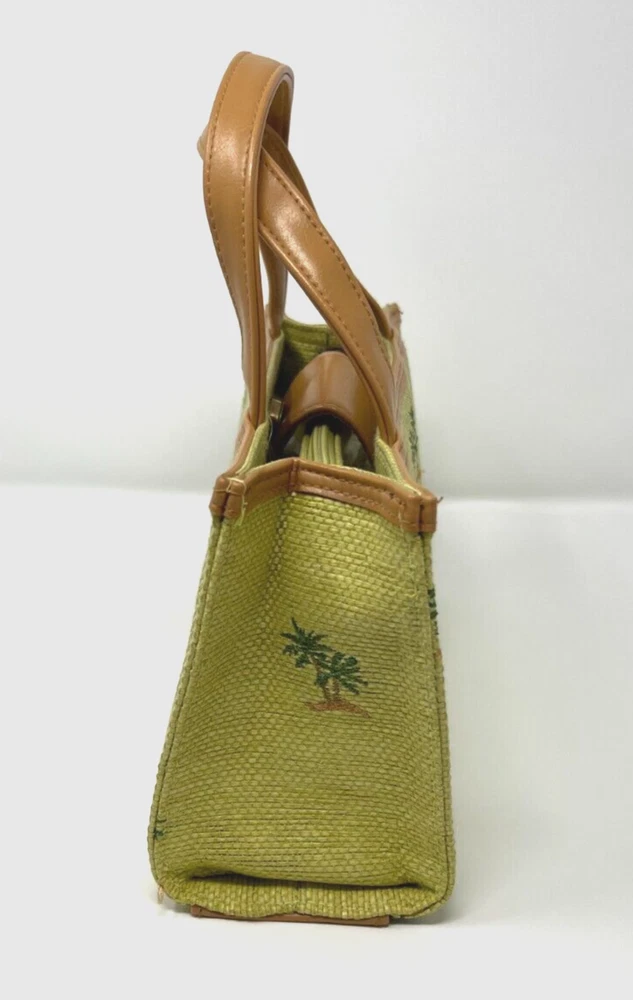 Lining Color: Green Theme: Hawaii, Tropics Состояние товара: Новый без ярлыков Closure: Snap Bag Height: 6.5 in Hardware Color: Gold Brand: Sunny Exterior Material: Straw Exterior Color: Lime Vintage: No Bag Depth: 4 in Department: Women Style: Satchel/Top Handle Bag Occasion: Casual, Party/Cocktail, Travel Size: Small Handle/Strap Color: Tan Features: Inner Pockets Handle/Strap Material: Faux Leather Bag Width: 10.5 in Accents: Embroidered Pattern: Palm Trees