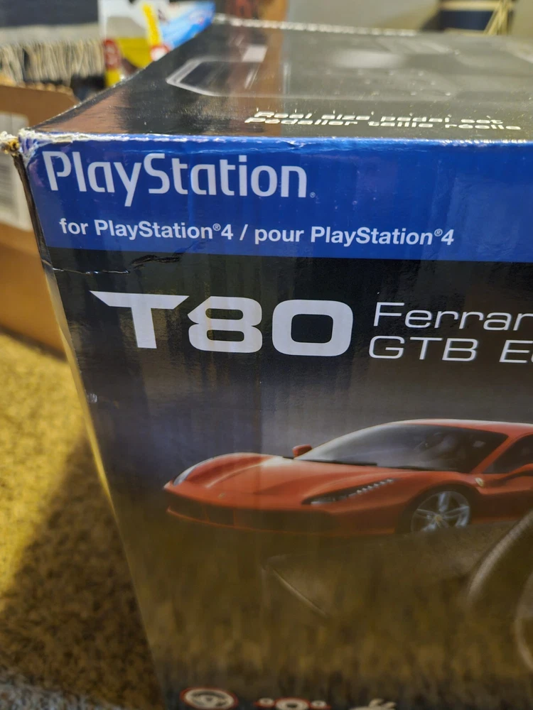 THRUSTMASTER T80 FERRARI 488 GTB EDITION IS BRAND NEW NOT BEEN OPEN AND IT IS STILL IN THE SAME BIX THAT IT CAME IN AND IT IS GOING UP FIR BIDD OR BUY IT NOW THE BOX HAS NO DENTS AND NO SCRATCHES ON THE BOX YOU ARE BUYING THIS ASNIS AND IT IS BRAND NEW STILL IN THE BOX THERE ARE NO RETURNS OR REFUNDS. IF YOU NEED MORE INFORMATION SEND ME A MASSAGE ON HEAR PLEASE AND THANK
