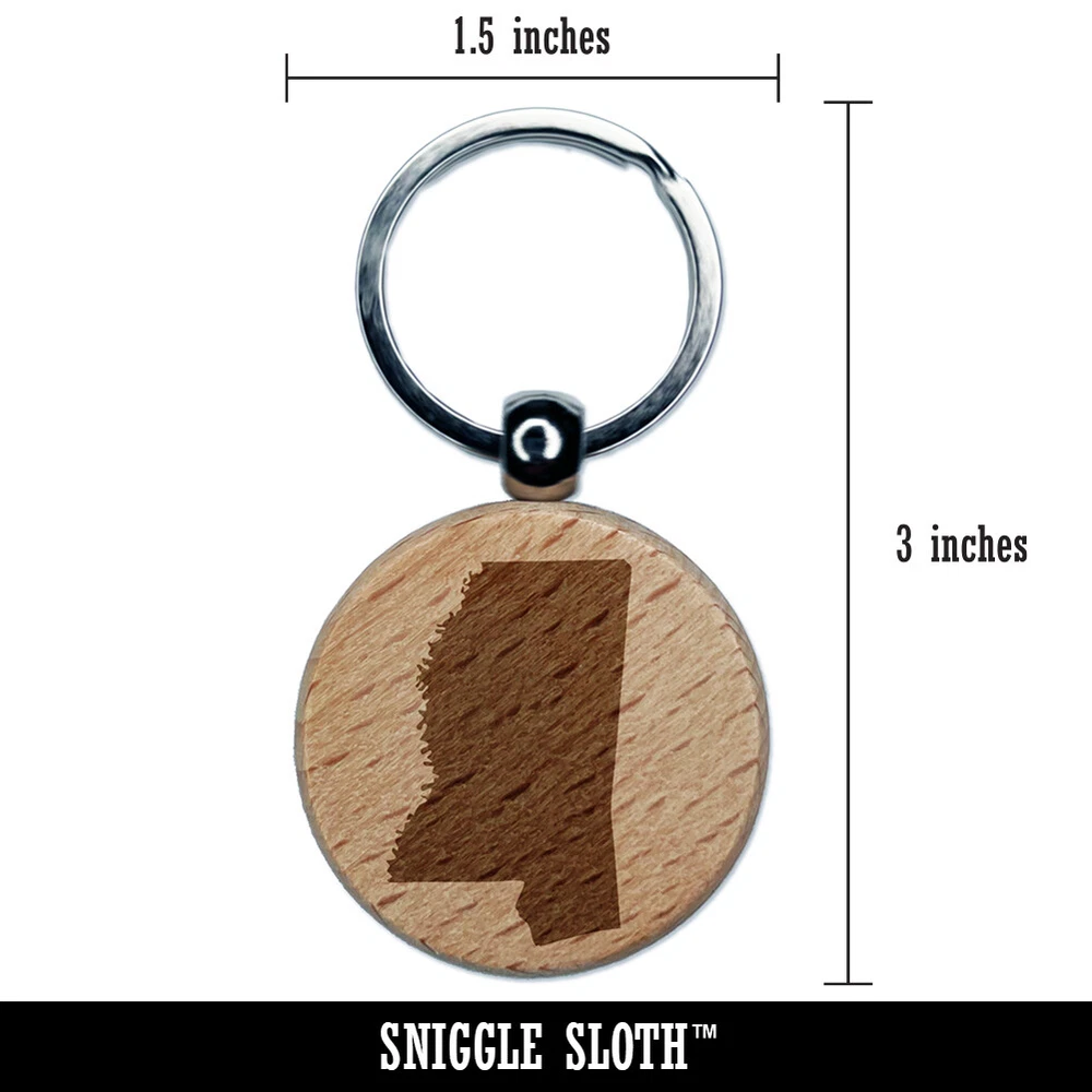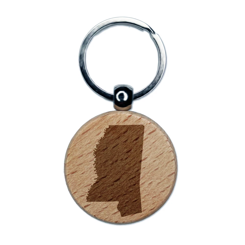 ミシシッピ州シルエット彫刻ウッドラウンドキーチェーンタグチャーム