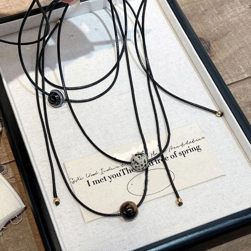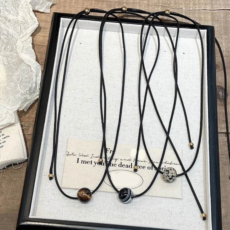 Adjustable Length Spotted Stone Necklace Natural Stone Bead Choker for Women Features: Make a statement with this adjustable black rope necklace featuring a natural stone pendant for adding a touch of to any outfit. Crafted with alloy, this necklace is not only durable but also to tarnish, making it suitable for long term wear. Designed for couples and fashion enthusiasts, this necklace exudes a vintage charm that appeals to those who appreciate retro styles. Whether it's for everyday wear, parties, or special occasions, this versatile necklace enhances your overall look with its unique and sophistication. Showcase your individuality with this of a kind necklace a must have accessory for those who appreciate expression. Specifications: Natural Stone Size:Approx.50cm/19.68" Package Includes: 1Piece Stone Necklace note: Please allow 1-2cm errors due to manual measurement,Please make sure that you do not mind before you order. Due to the difference between different monitors, the picture may not reflect the actual color of the item.