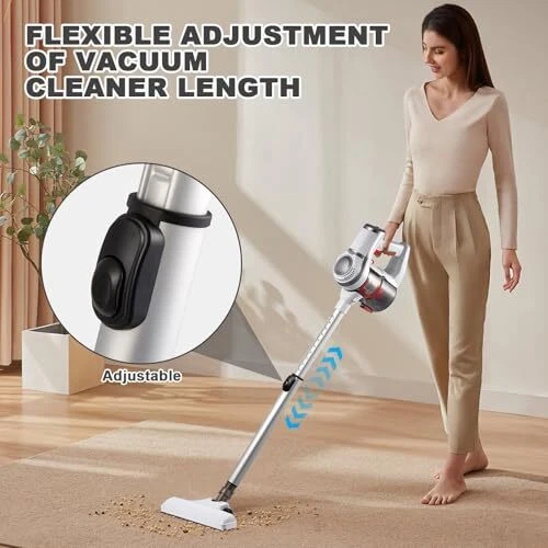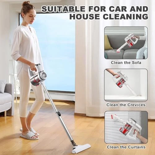 Return Policy Fast Delivery Trusted seller Cordless Vacuum Cleaner, Stick Vacuum Cleaner with Brushed Motor, Lightweight Vacuum Cleaner with Adjustable Modes, Upright Vacuum Cleaner for Home, Wireless Vacuum for Hard Floor and Pet Hair Product Description Strong Suction: Cordless vacuum cleaner is equipped with a 150W brushed motor, which provides powerful vacuum suction from 6KPa to 10KPa. Its noise reduction design ensures the user experience, and the noise does not exceed 75 dB when in use Removable Rechargeable Battery: The cordless vacuum cleaner has a powerful battery module, including six 2200mAh lithium batteries, which provides long-lasting endurance for your home cleaning. It works for 20 minutes at high gear and 30 minutes at low gear, fully meeting your cleaning needs Lightweight and Adjustable Length: Our upright cordless vacuum cleaner weighs only 2.27 pounds, and you will not feel tired holding it. The telescopic tube is lightweight and can be adjusted at will. Classic hand-held design, easy to carry Cordless Vacuum Cleaner: Our floor brush adopts a straight suction design, which is suitable for hard floors and short-pile carpets. In order to cater to more complex situations, the vacuum cleaner is equipped with three brush heads of different shapes to facilitate our cleaning. In addition to being suitable for cleaning floors, tiles and other surfaces, it can also easily clean high places such as ceilings and curtains, as well as gaps behind cabinets and sofa Upright Vacuum Cleaner: Vacuum cleaner is equipped with an active filtration device. The wire mesh can filter out large particles of stains, and the internal HEPA filter can filter out some very fine particles Shipping Returns Payment Shipping Shipping is FREE to all addresses other than APO/PO boxes in the lower 48 states. All our stock ships from US-based warehouses. Shipped via USPS or UPS (depending on location and package weight) Unless stated otherwise, all orders will ship within 24-72 hours of your payment being processed. Check our feedback to see the great reviews of FAST shipping we offer. Returns Seller does not accept returns Payment We currently accept payment via eBay managed payments only. Once payment is cleared, we will dispatch your shipment within 1-3 business days. Please refer to the "Shipping" tab for more information regarding shipping speed to your destination.