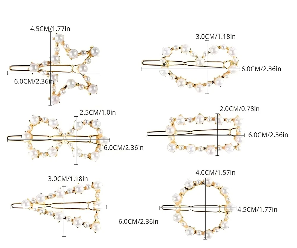 ANNACREATIONS Korean Style Gold Metal Pearl Geometric Stone Lock Hair Pins Hair Clip Hair Accessories Jewellery for Women And Girls (Pack of 6 Pcs) About this item Geometric Design Alloy Hair Pins: The special design with the Geometric style of these hair hairpins can let you have a charming and elegant hairstyle, beautiful hair clips match almost all outfits, hair colors, and hairstyles. Metal Hair Clips: For Alloy material makes this hair clip exquisite and high quality, Make you charmer and elegant. Variety of Shapes: The fancy geometric design is pretty, more simple more fashionable, will make you charming, elegant, and get more compliments for you. Occasions: These trendy hairpins are used for decorative daily wear or dress up for any occasion's hairstyles decorations, prom, party or give out as a gift. Great Accessory And Hair Decoration For Girls, Women ,Perfect size