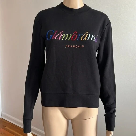 Être Cécile Black Graphic Print Crew Neck Sweatshirt Great condition! Size S • Être Cécile Sweatshirt • Black • Graphic Print •Fabric: 100% Cotton Embroidered Accent • Long Sleeve with Crew Neck Fit:Tops by Être Cécile typically fit true to size. •No Returns No Holds No Trades