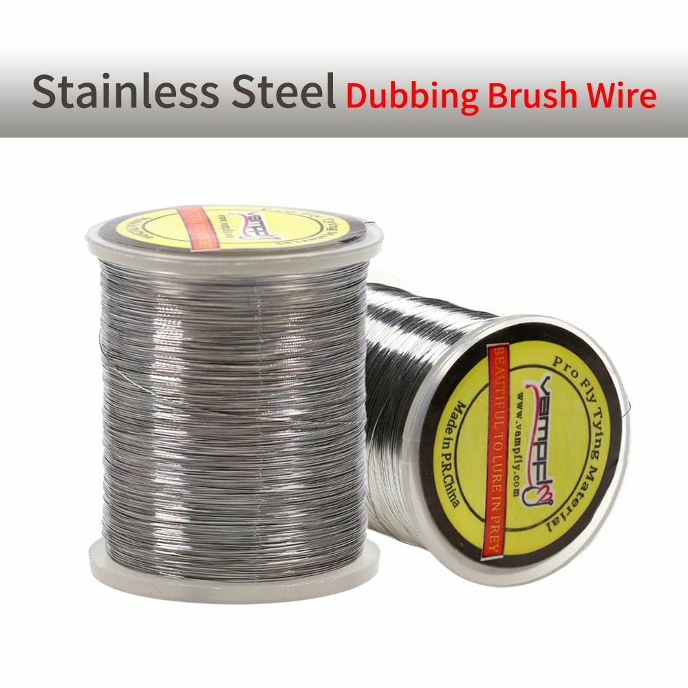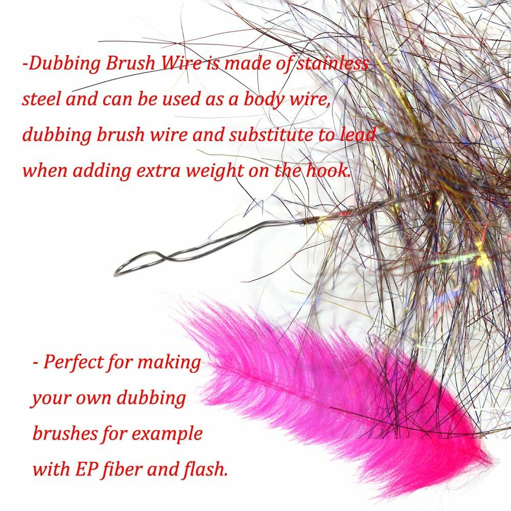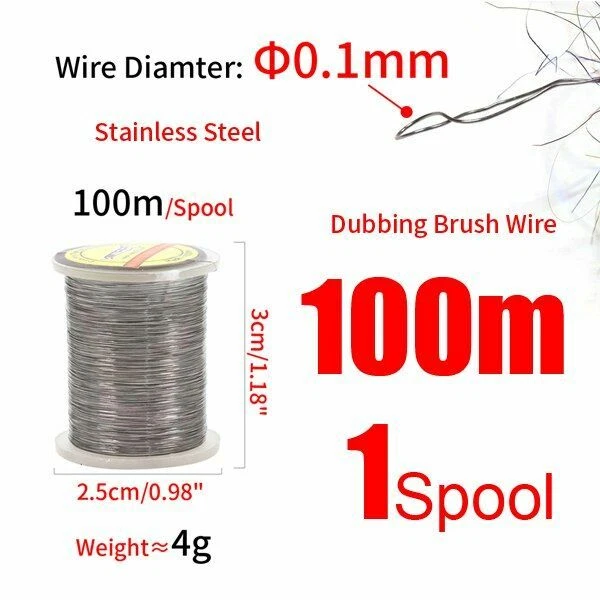 Fly Tying Dubbing Brush Wire Material: stainless steel; Size: 0.1mm x 100m; 0.1mm x 200m; Features: -Dubbing Brush Wire is made of stainless steel and can be used as a body wire, dubbing brush wire and substitute to lead when adding extra weight on the hook. -Perfect for maikon your own dubbing brushes for example with Nayat and flash. -Big brushes for your pike flies