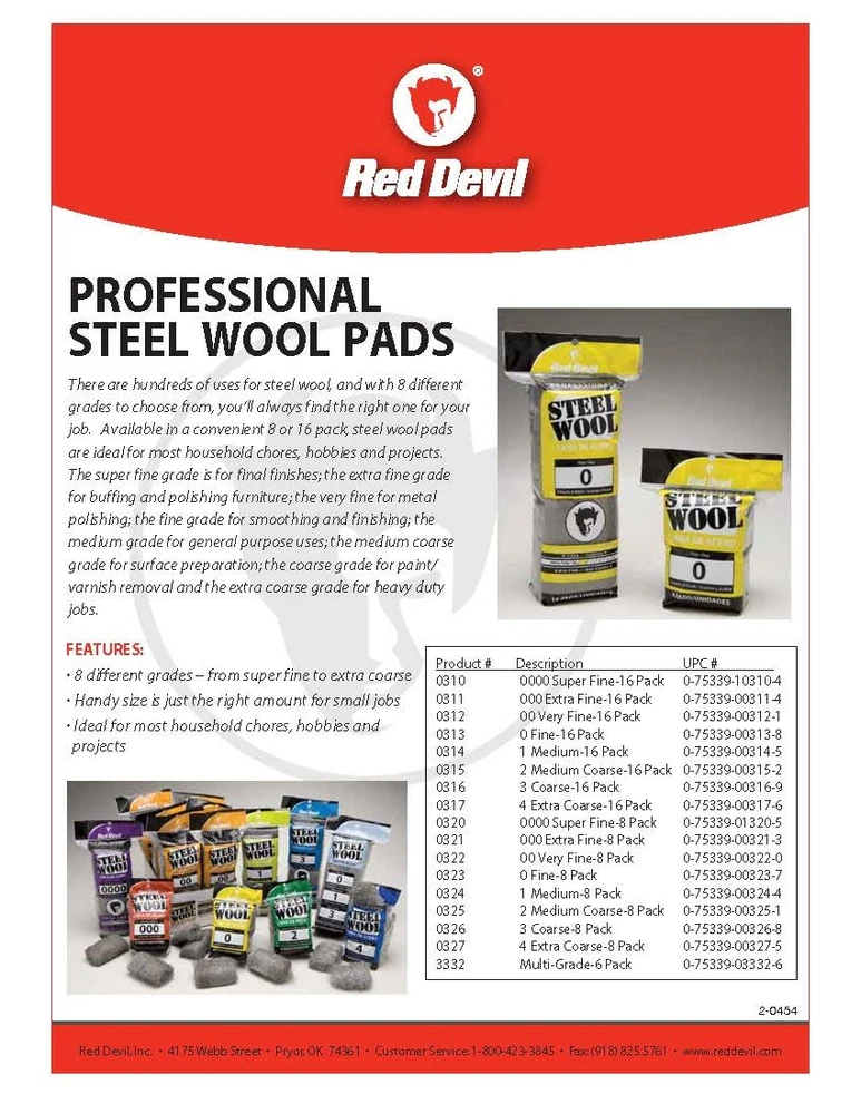 Store New Arrivals Add to Favorite View Feedback Contact 0310 Steel Wool, 0000 (Pack of 96) Description Item model number 0310 Item dimensions L x W x H 8.3 x 8.3 x 10.2 inches Product Dimensions 8.3 x 8.3 x 10.2 inches; 3.11 Pounds Material Steel Wool Country of Origin China Style 0000 Super Fine Grit Material Steel Wool Grit Type Super Fine Size 96 Pads VERSATILE FINISHING TOOL: Achieve professional-quality results in woodworking, furniture restoration, and household cleaning projects with this super fine steel wool. SMOOTH SURFACES EFFORTLESSLY: Perfect for preparing surfaces before final coating, ensuring a flawless finish on wood painted surfaces and polyurethane. HIGH-LUSTER POLISH: Buff furniture and woodwork to a brilliant shine, restoring the beauty of your wooden pieces without scratching delicate surfaces. EFFECTIVE CLEANING SOLUTION: Clean windows, glass, and chrome surfaces without water or harsh chemicals, leaving them spotless and streak-free. FLEXIBLE AND DURABLE: Easily conforms to various shapes and reaches tight corners, making it ideal for cleaning precision tools and intricate surfaces. Red Devil 0000 Super Fine Steel Wool is an essential tool for DIY enthusiasts, woodworkers, and homeowners. This versatile product excels in finishing, polishing, and cleaning tasks across various applications. The super fine grade is perfect for smoothing surfaces before final coatings, buffing furniture to a high luster, and cleaning delicate surfaces without scratching. Use it to prepare wood, lacquer, varnish, shellac, and polyurethane for flawless finishes. It's also excellent for cleaning windows, glass, and chrome without water or harsh chemicals. The flexible steel fibers easily conform to different shapes, allowing you to reach tight corners and clean precision tools effectively. Available in multiple sizes, Red Devil Steel Wool is a must-have for your toolbox. Whether you're restoring antique furniture, working on fine woodworking projects, or tackling household cleaning tasks, this super fine steel wool delivers professional-quality results every time. ABOUT US We offer the best prices around on high quality products. Our E-store includes media such as books, movies, music and games while offering electronics, toys, sporting apparel, clothing, tools, general home, garden items and more. SHIPPING We are always working hard to ensure your package arrives as soon as possible. Please understand that some factors like weather, high postal traffic, and the performance of shipping companies are outside of our control. We offer free shipping to the lower 48 states and ship within 2 business days of payment, usually sooner. We do not accept P.O. Boxes. Please provide a physical address. For shipping outside of the continental USA, we only use eBay's Global Shipping Program.The item is shipped to KY and then sent to the rest of the world. International customers are responsible for all duties and taxes. Continue to check out in order to calculate costs for shipping the item to your country. Messages regarding eBay's Global Shipping Program MUST be directed at eBay EXCLUSIVELY. RETURNS We offer a 30-Day Return Policy on items which you are not completely satisfied with. You have the option for a full-refund or an exchange of the item. No returns are available on items shipped outside of the USA. PAYMENT We accept PayPal. CONTACT US This page content is yet to come Please ad us to your favorite seller and visit again later Thank You CUSTOMER SATISFACTION We try our very best to make sure every customer is completely satisfied. If there's a problem, message us! We're happy to help. WE ACCEPT Copyright © 2021 AutoDS. | All Rights Reserved