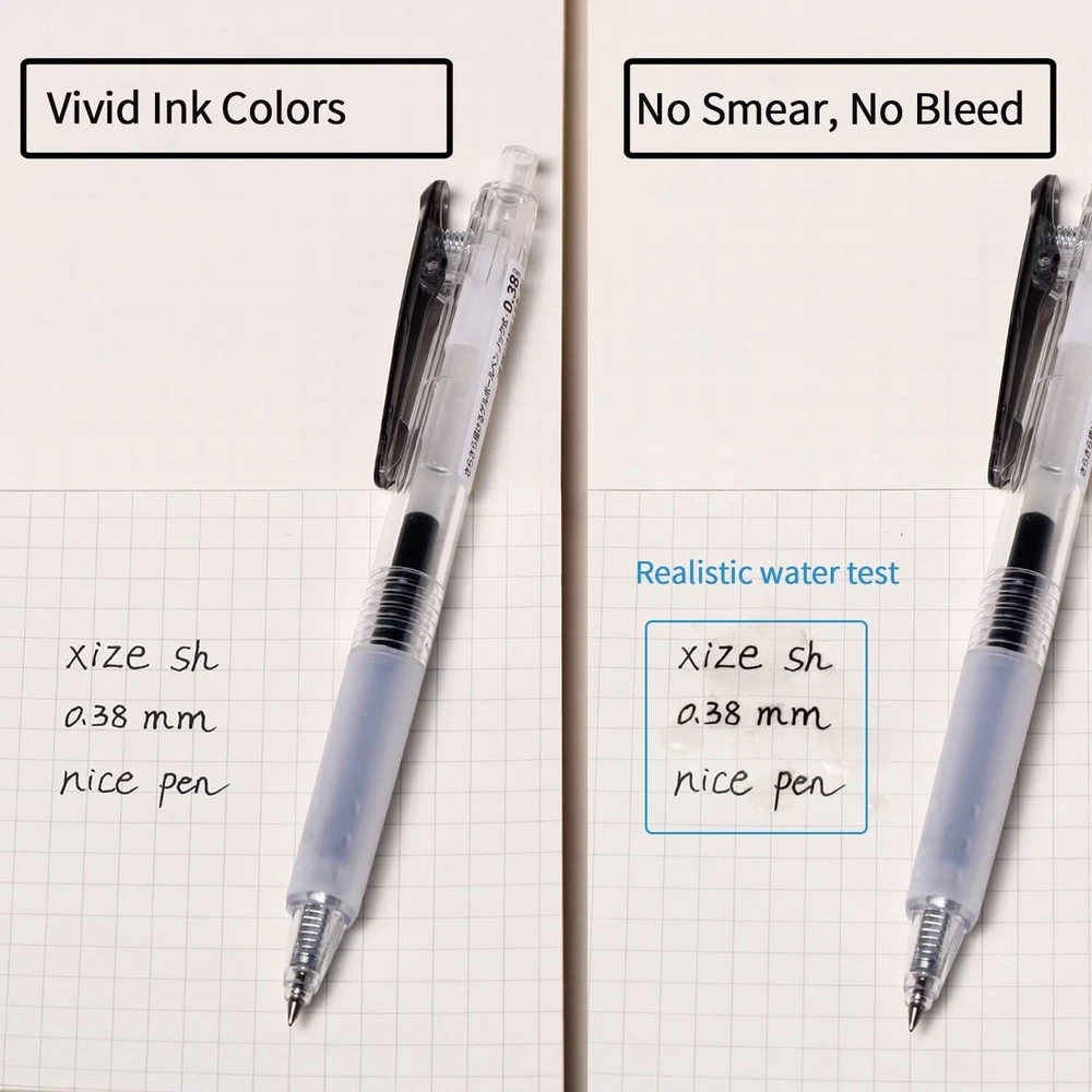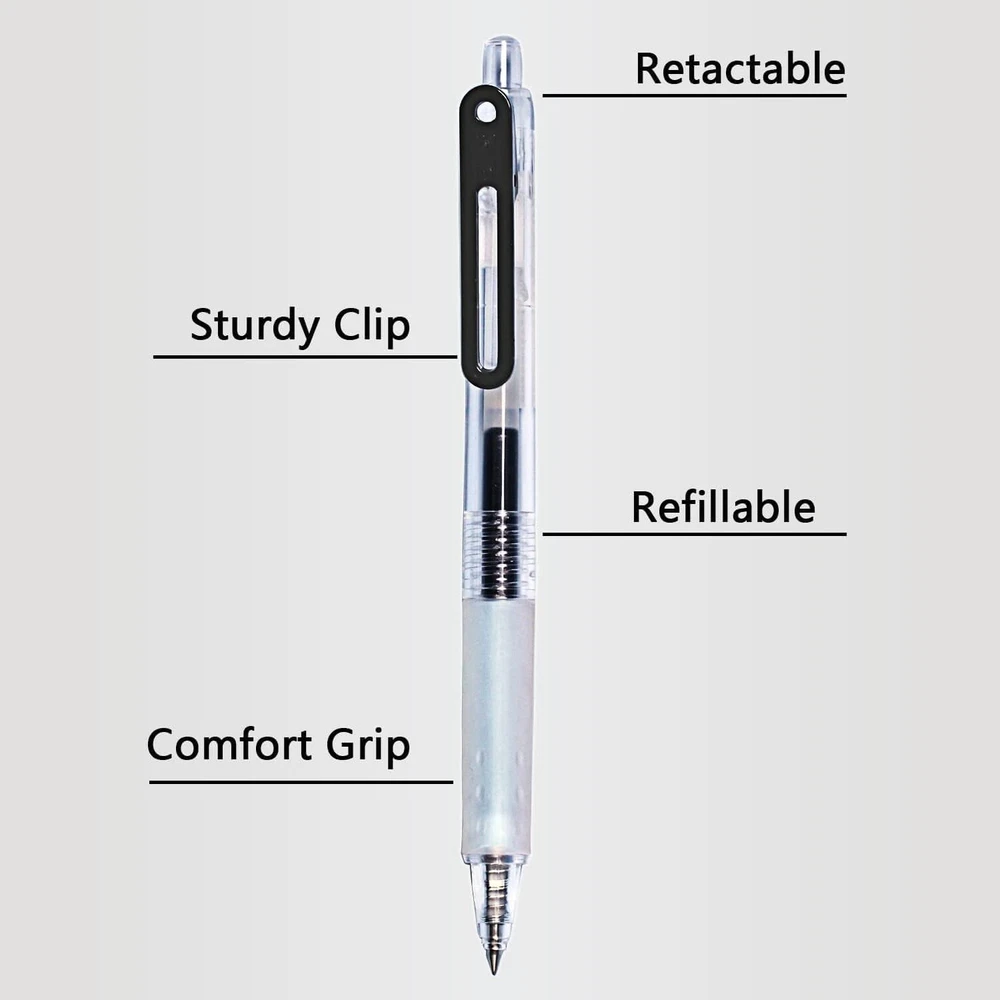 About this item Grip-The Gel Ink Pens Sofe rubber grip makes for comfortable writing during any task Ink -The rolling ball pens uses "MIKUNI" permanent ink, which is waterproof and moisture-proof, and is permanently archived without fading. Tip - 0.38mm Ultra Fine Point, High-Precision Pen Tip, Production by Swiss MIKRON Machine Tool, Craftsmanship Comparable to a Swiss Watch, Tungsten Carbide Pen Ball, Wear-Resistant, Corrosion-Resistant, and More Suitable for Long-Term Writing. Color - Black Ink.This black gel pen is bright in color and can be archived permanently without fading Features:There is a slight sense of damping when writing to make your calligraphy stand out! Pack-6 Count in Box,Box Size:5.82*2.28*0.75 Inch