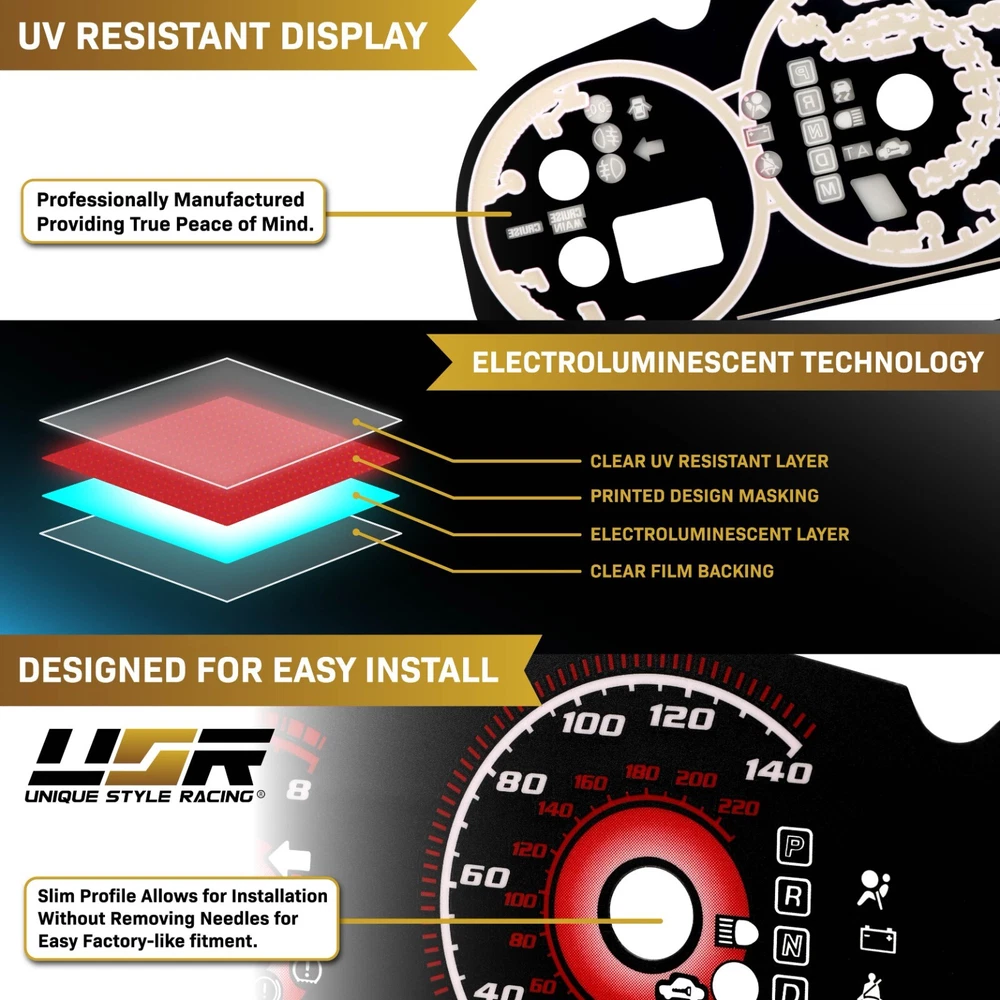 07-08 Mazda 3 RED Glow Gauge Black Overlay Instrument Cluster