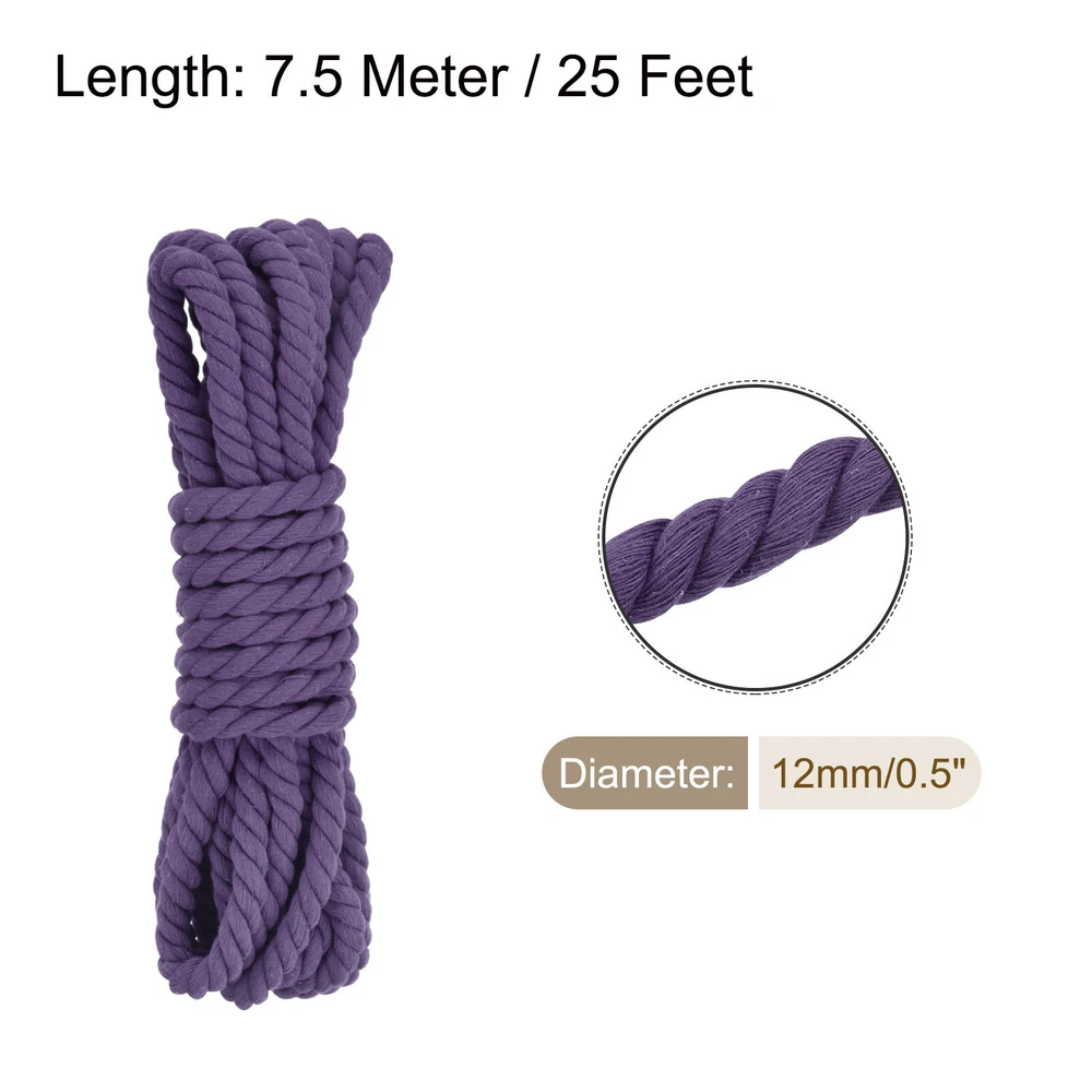 0.5 Inch 25 Feet Macrame Cord, Cotton Cord Rope String - Purple