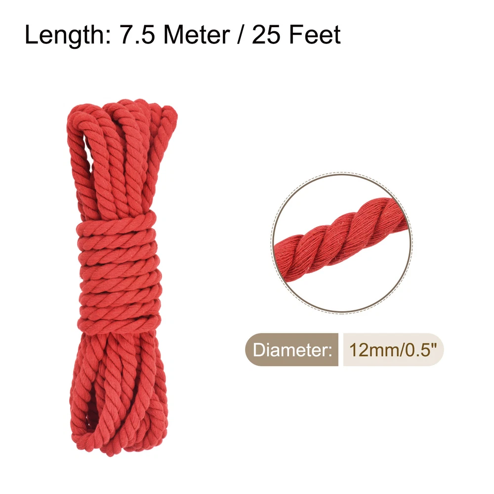 0.5 Inch 25 Feet Macrame Cord, Cotton Cord Rope String - Red