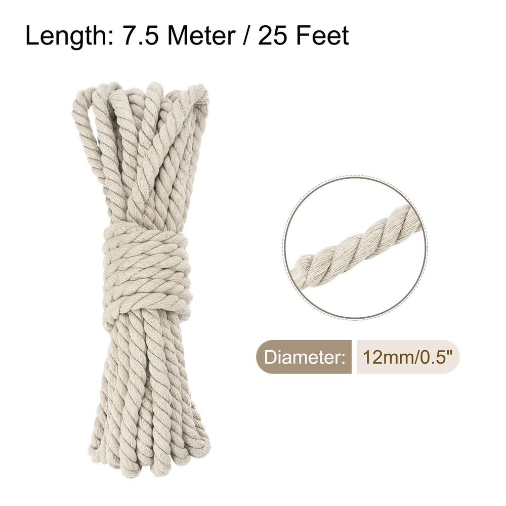0.5 Inch 25 Feet Macrame Cord, Cotton Cord Rope String - White Beige