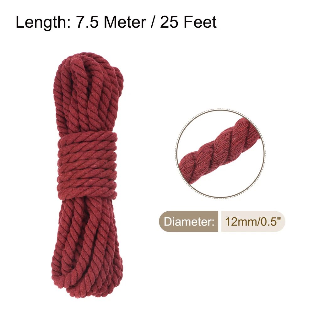 0.5 Inch 25 Feet Macrame Cord, Cotton Cord Rope String - Wine Red