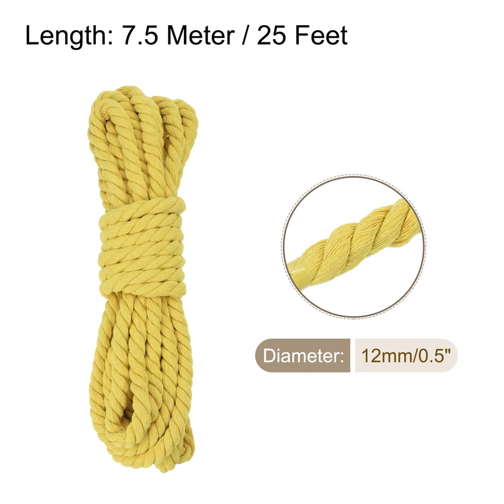 0.5 Inch 25 Feet Macrame Cord, Cotton Cord Rope String - Yellow