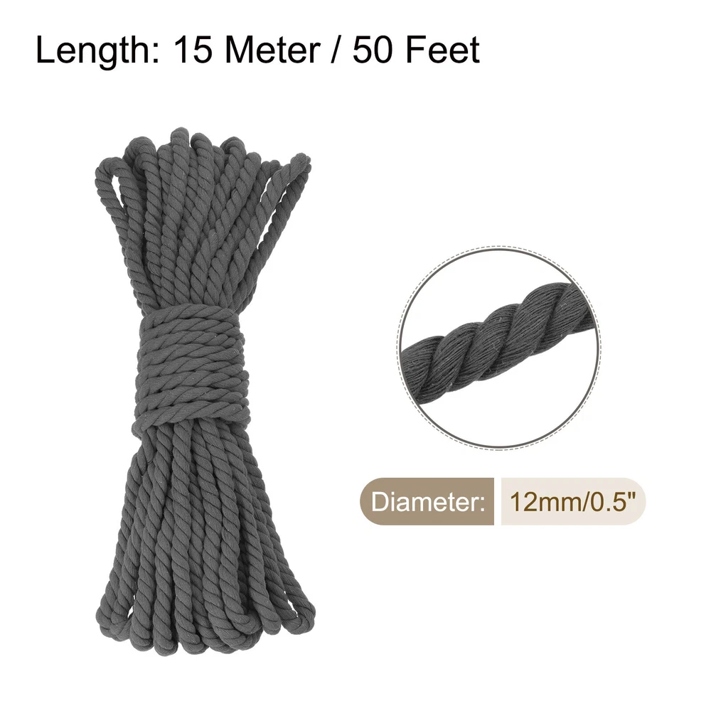 0.5 Inch 50 Feet Macrame Cord, Cotton Cord Rope String - Dark Grey