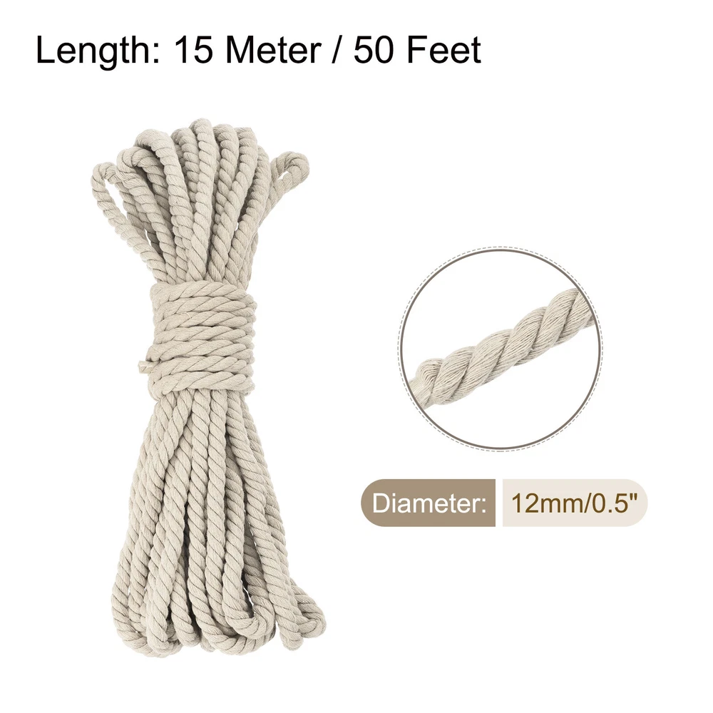 0.5 Inch 50 Feet Macrame Cord, Cotton Cord Rope String - White Beige