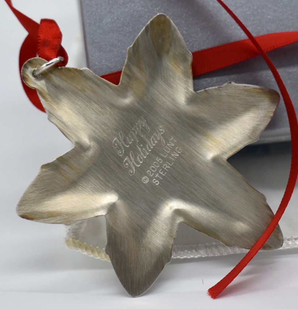 05 Lunt Sterling Poinsettia Star Christmas Ornament 6pt NOS in Box